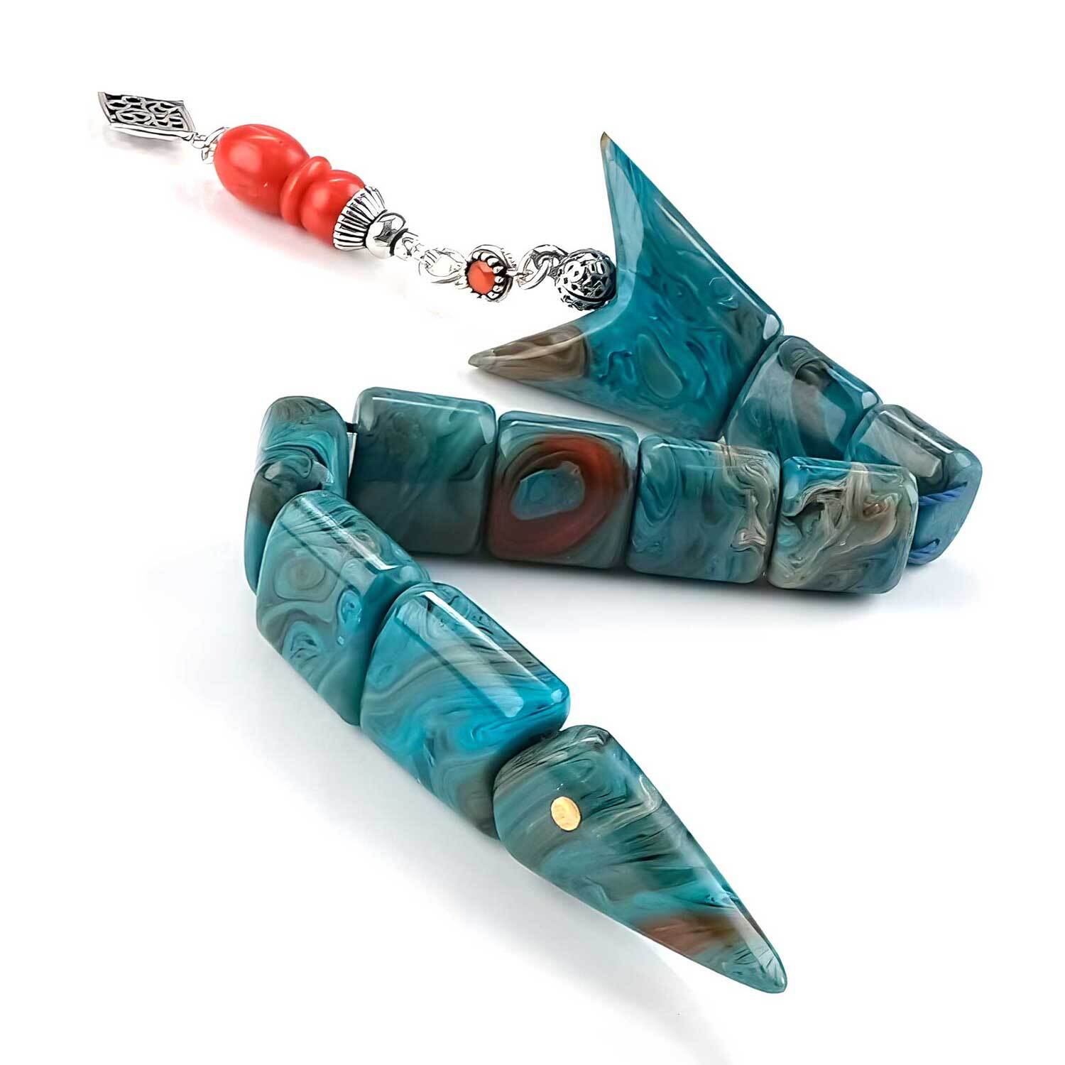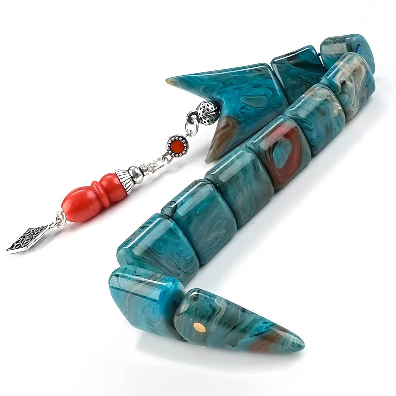 Akdeniz Mavisi Mercan Detay Sıkma Kehribar Balık Tesbih