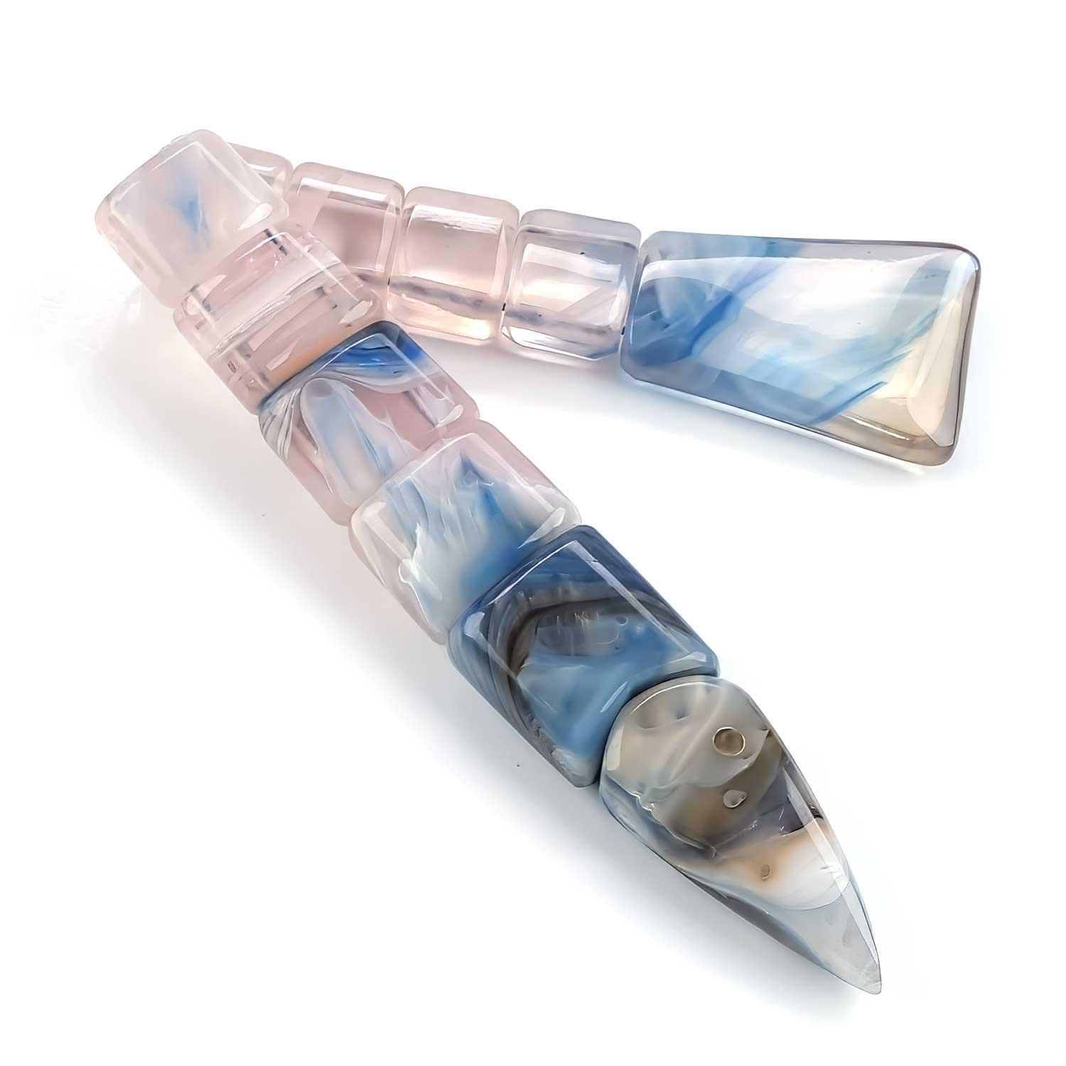 Akdeniz Mavisi Su Mozaiği Sıkma Kehribar Balık Tesbih