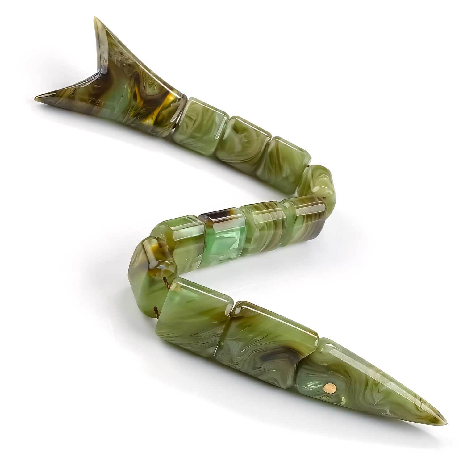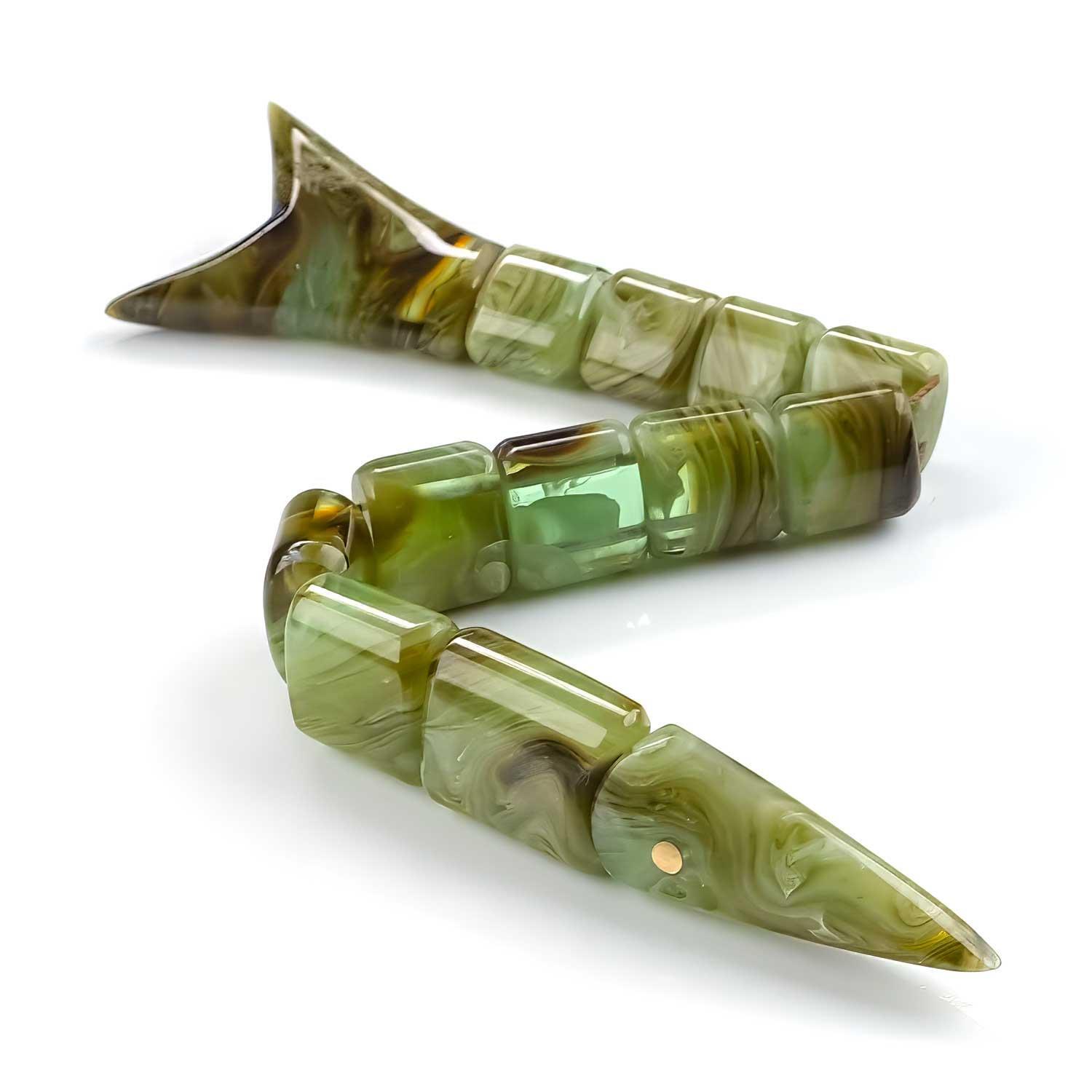 Amazon Yeşili Siyah Hareli Sıkma Kehribar Balık Tesbih
