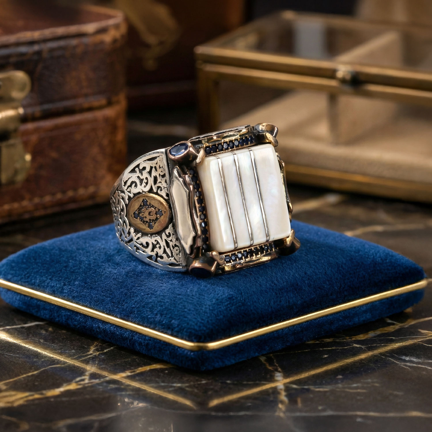 Çeşitli doğaltaşlar ve 925 ayar saf gümüş kullanılarak elde edilmiştir.