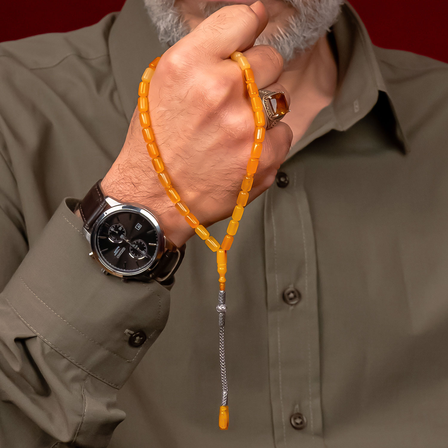 Ata Yadigarı Usta İşi Osmanlı Kehribar Tesbih