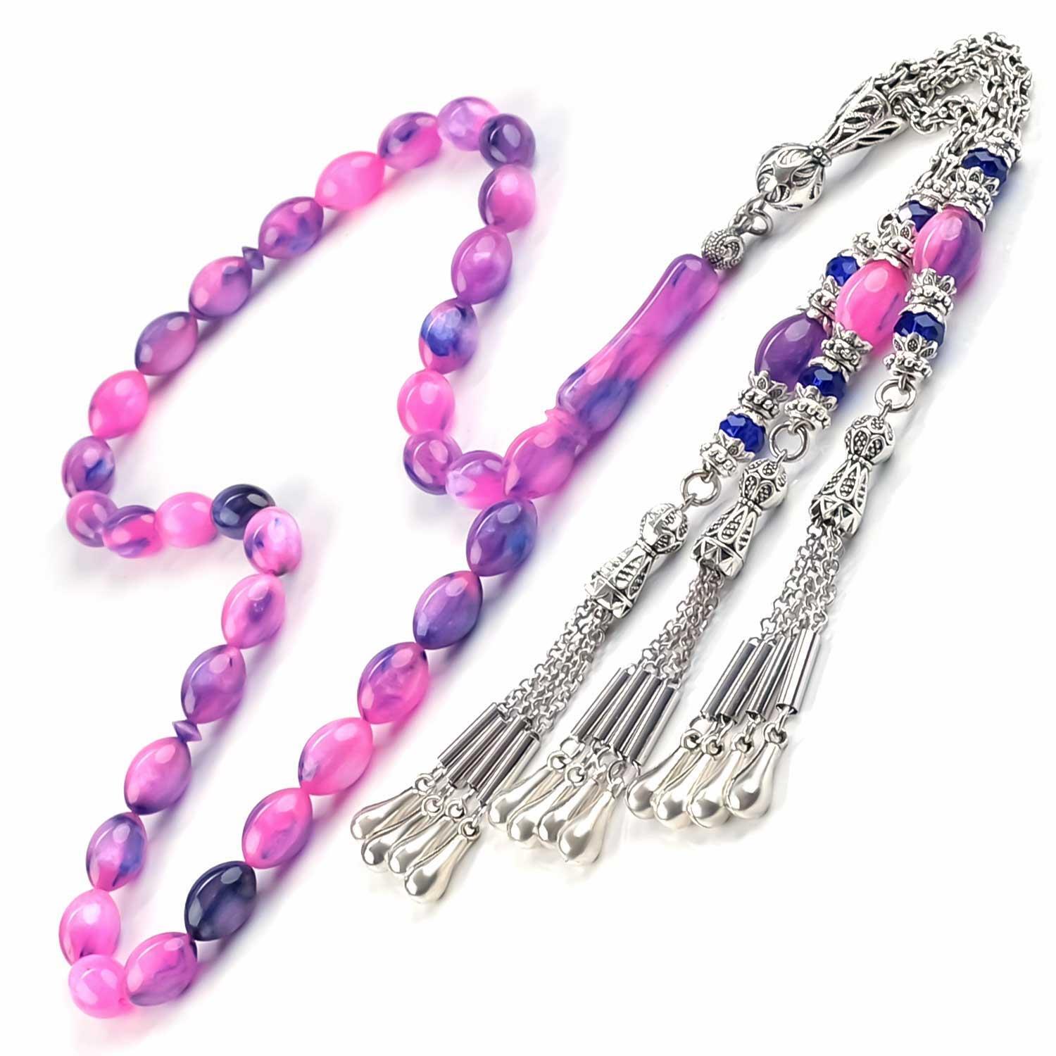 Aurora Pembe Simli Sıkma Kehribar Tesbih
