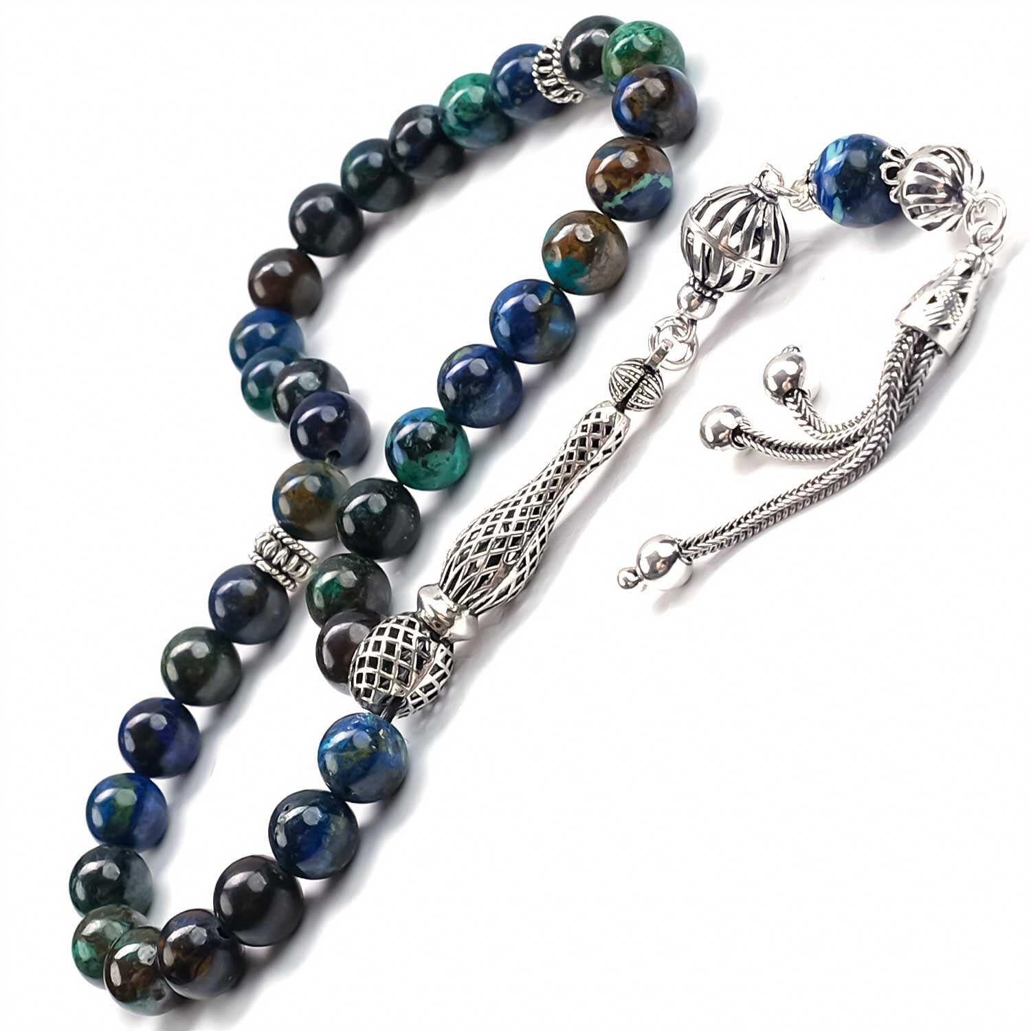 Azurit Gümüş Tasarım Doğaltaş Tesbih