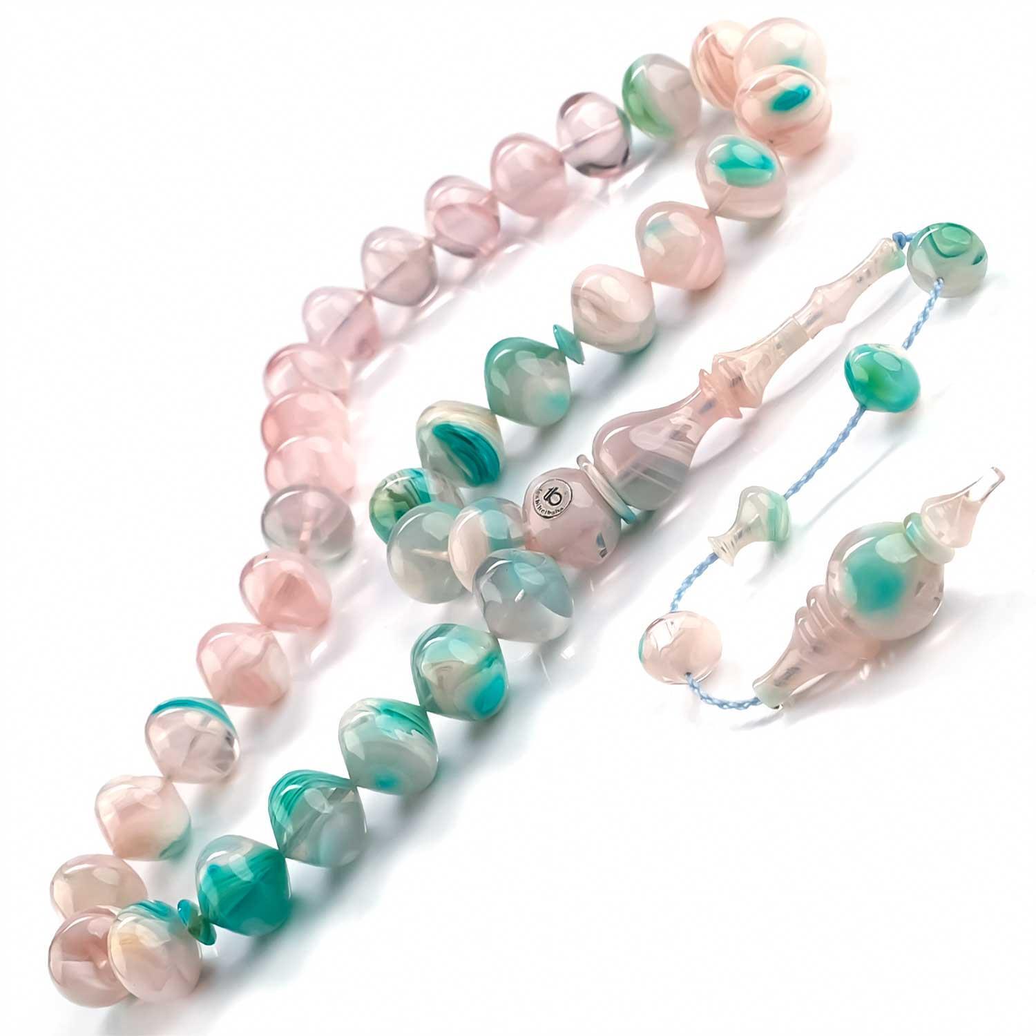 Baba Atölyeden Su Yeşili Usta İşi Sıkma Kehribar Tesbih