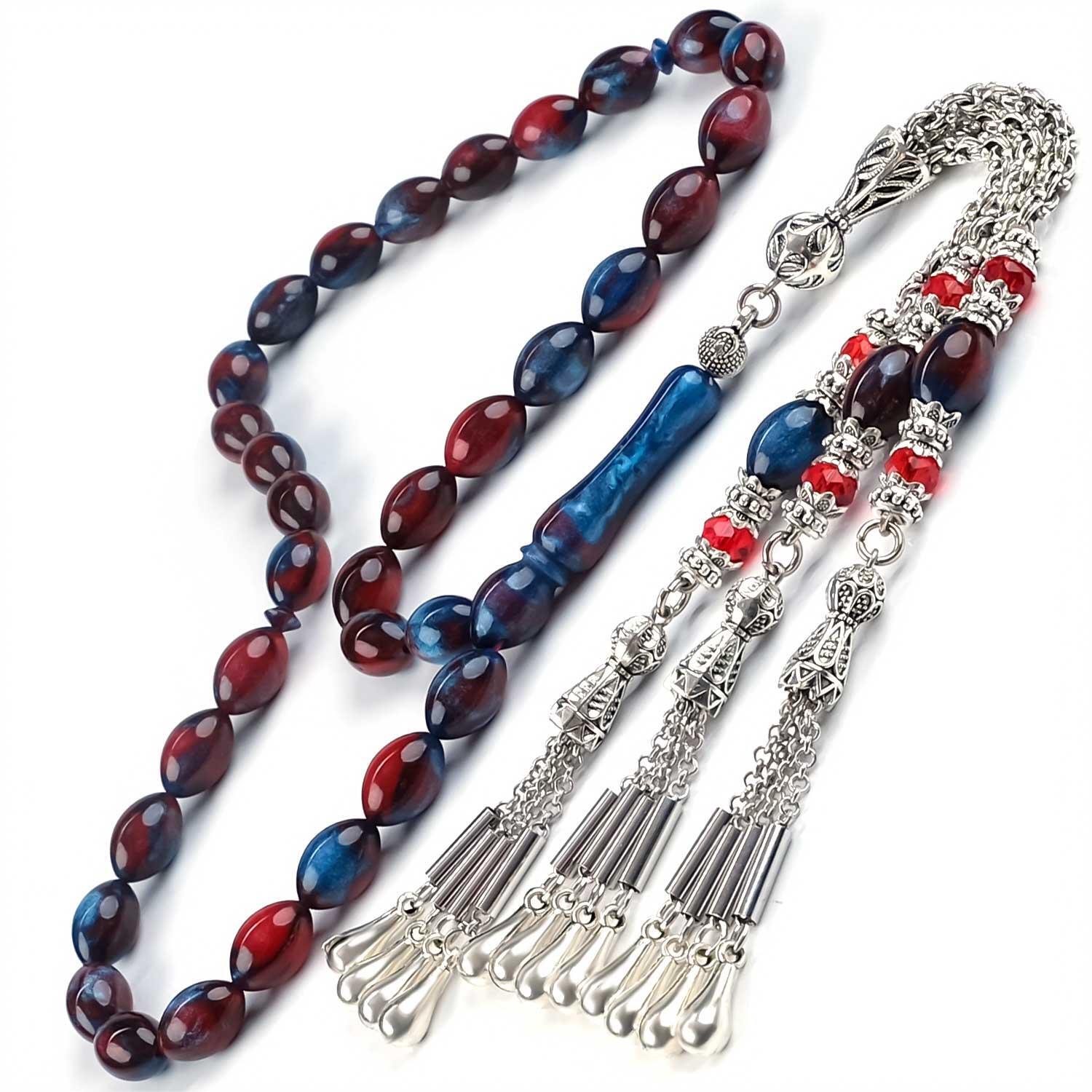 Bordo Lacivert Mix Sıkma Kehribar Tesbih