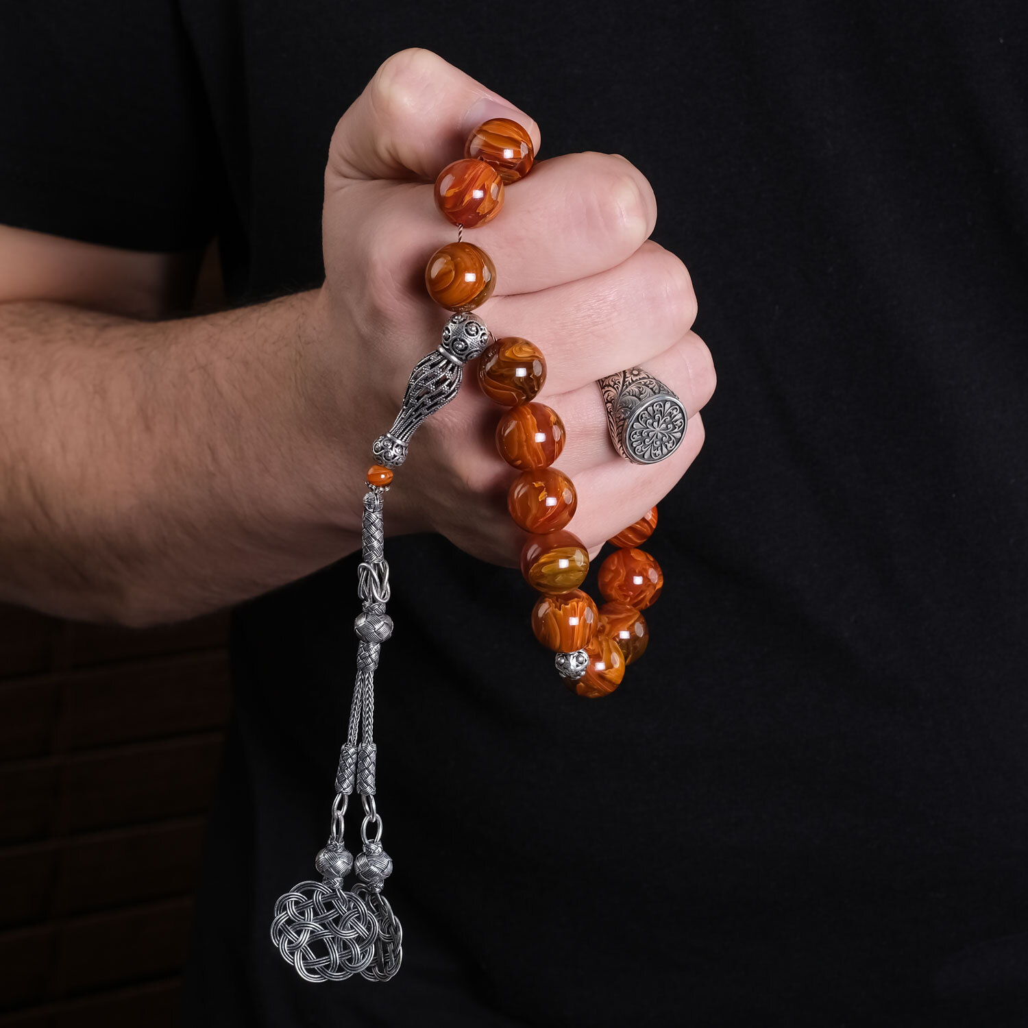 Buhara Collection İri Boy Maskot Sıkma Kehribar Tesbih