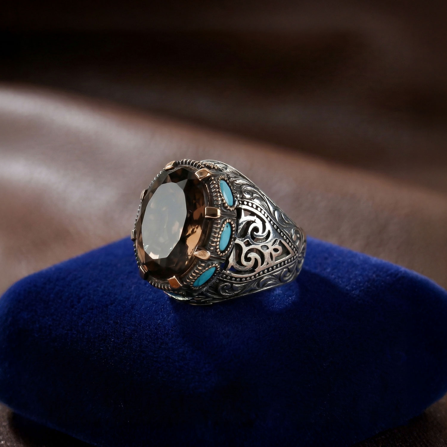 Dumanlı Kuvars Mavi Mineli Sertifikalı Gümüş Yüzük