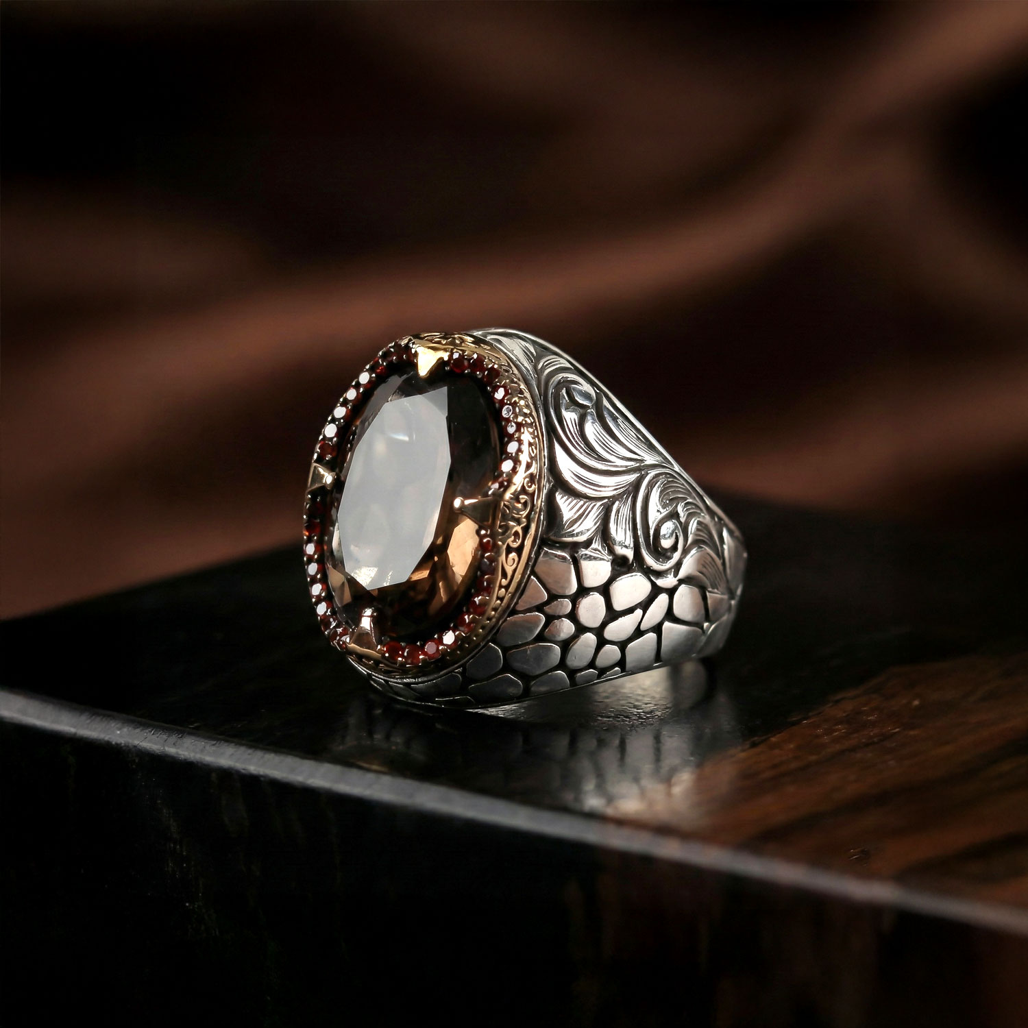 Dumanlı Kuvars Zirkon Detay Sertifikalı Gümüş Yüzük