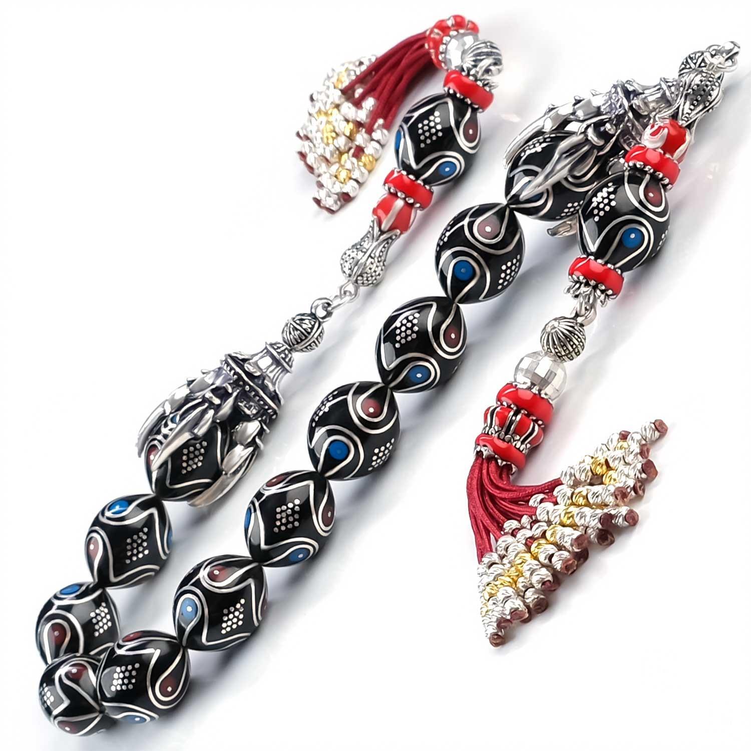 Erzurum Baba Atölyeden İşlemeli Zaza Oltu Taşı Tesbih