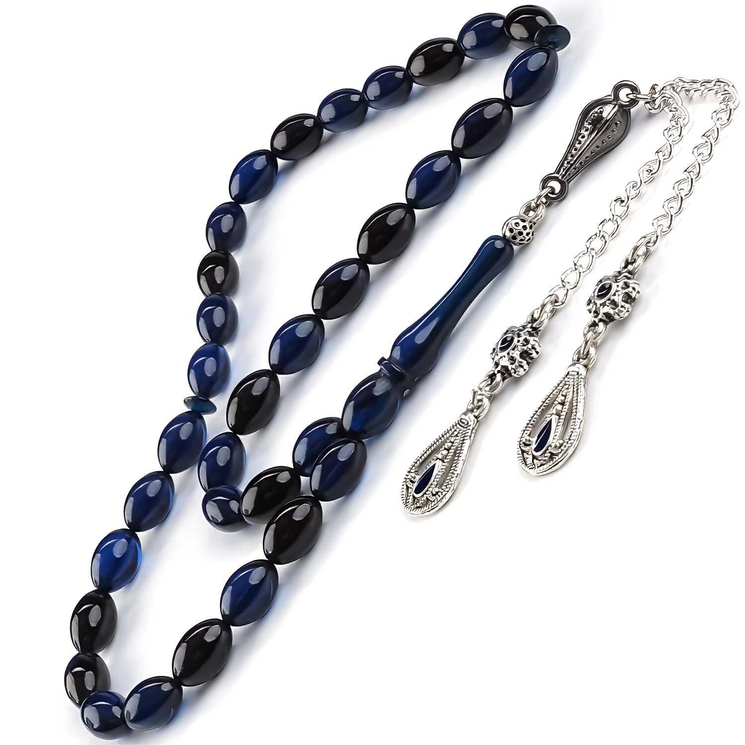 Gece Mavisi Siyah İs Ateş Kehribar Tesbih