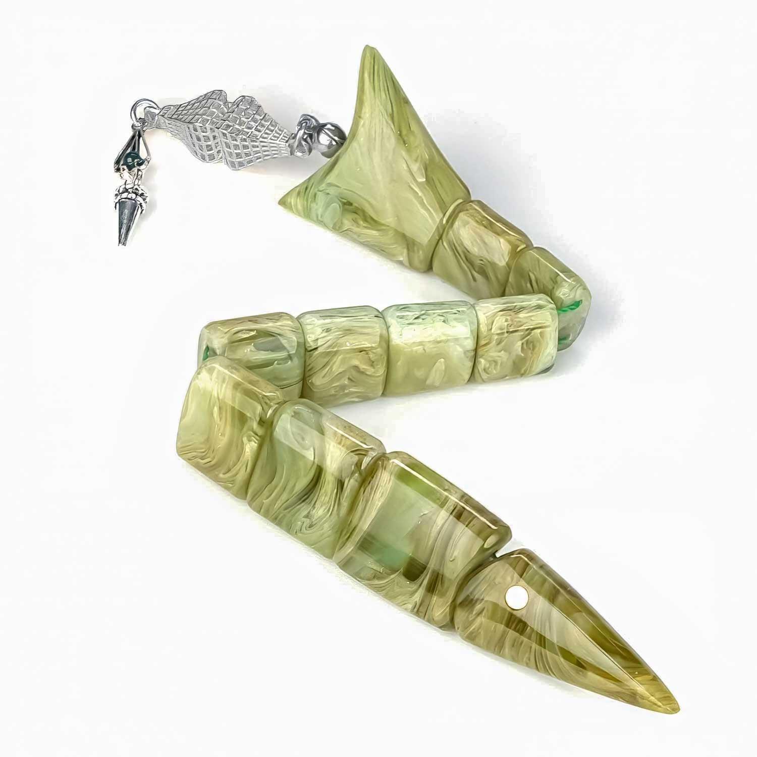 Gümüş Seri Özel Üretim Ebruli Yeşil Balık Tesbih