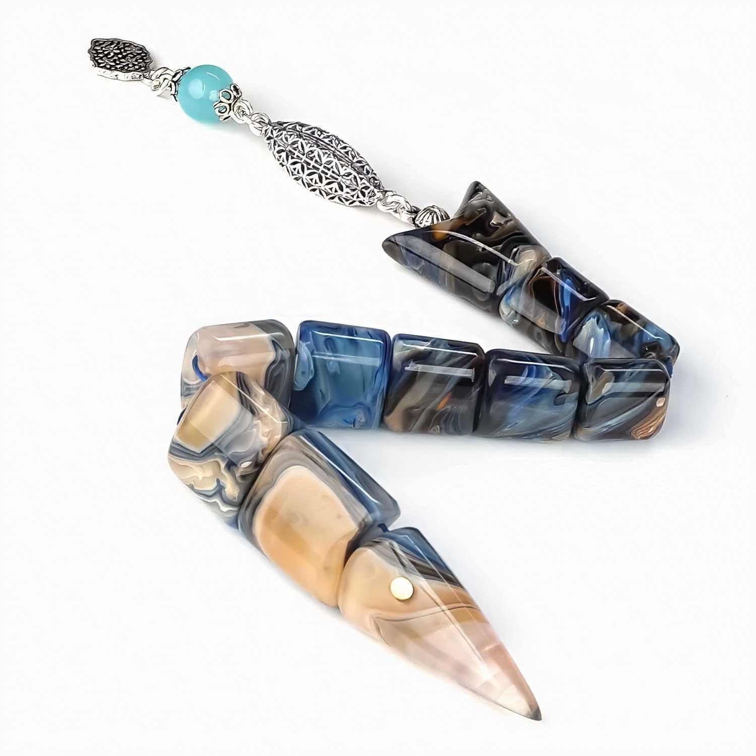 Gümüş Seri Özel Üretim Siyahi Mavi Balık Tesbih