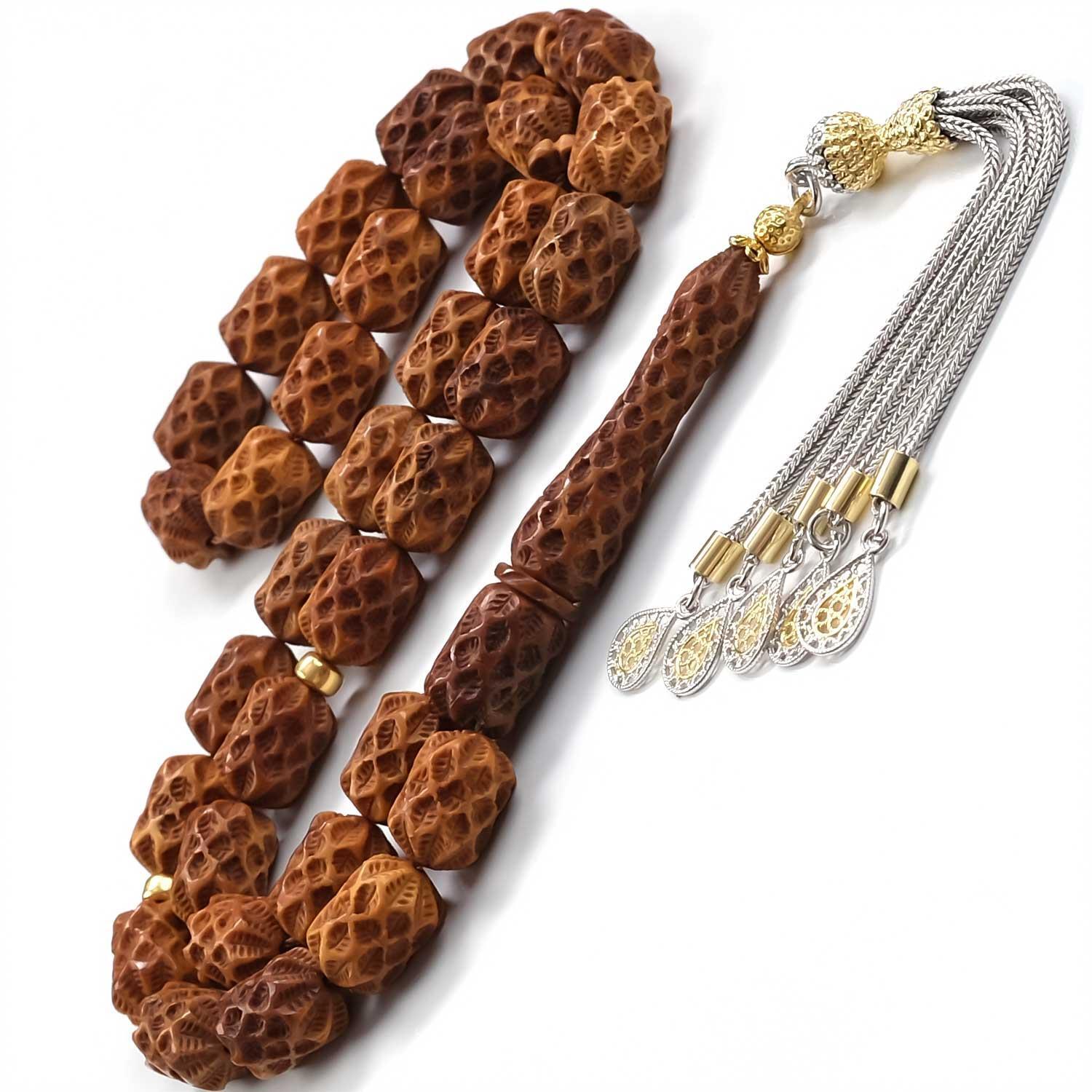 Gümüş Tasarım El Oyması Kuka Tesbih doğal bir malzeme olması sebebiyle taneleri üzerinde doğal çizikler bulunabilmektedir. Bu ürünün bir kusuru değil aksine doğa olmasının vermiş olduğu bir özelliktir.