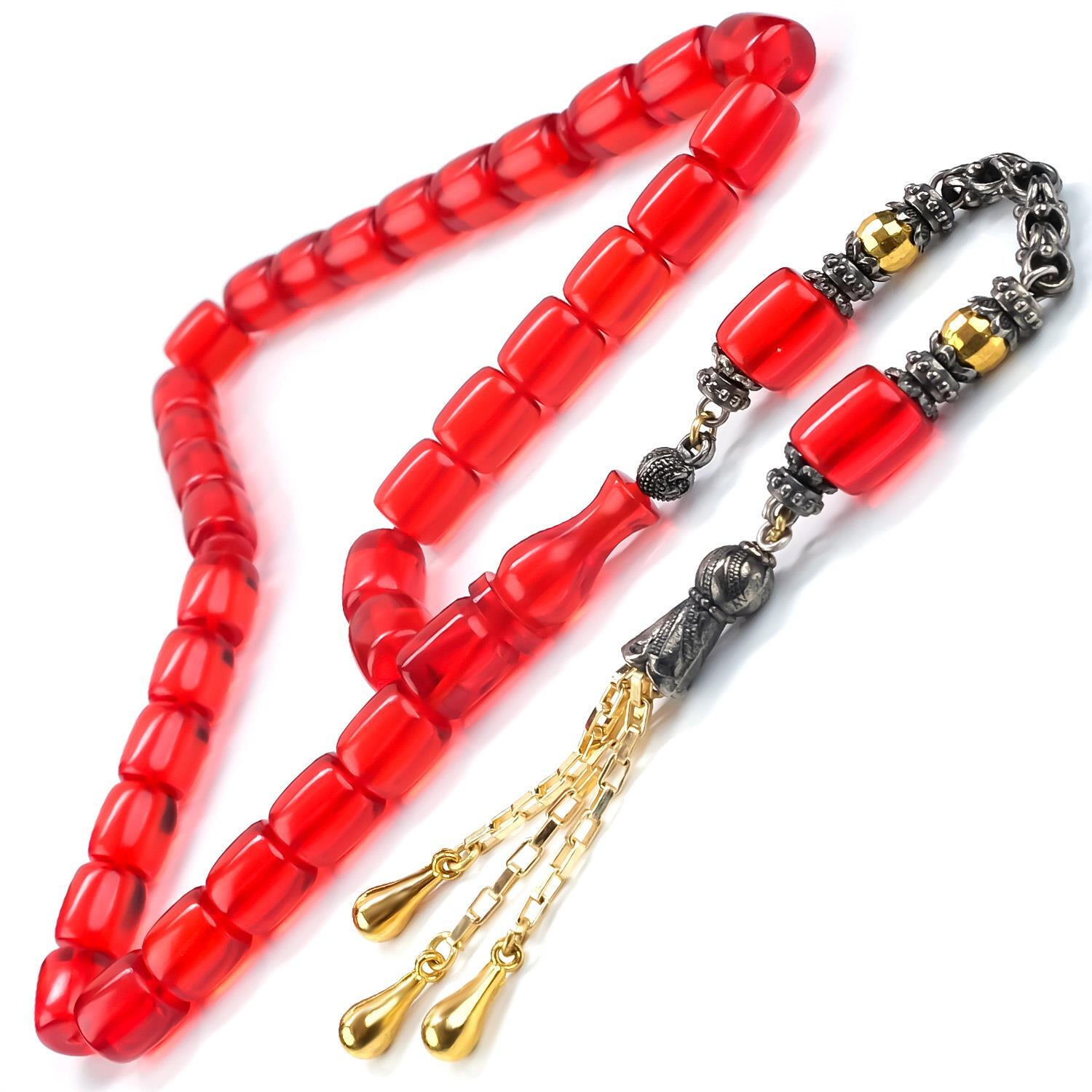 Gün Kızılı Çift Renk Püskül Ateş Kehribar Tesbih