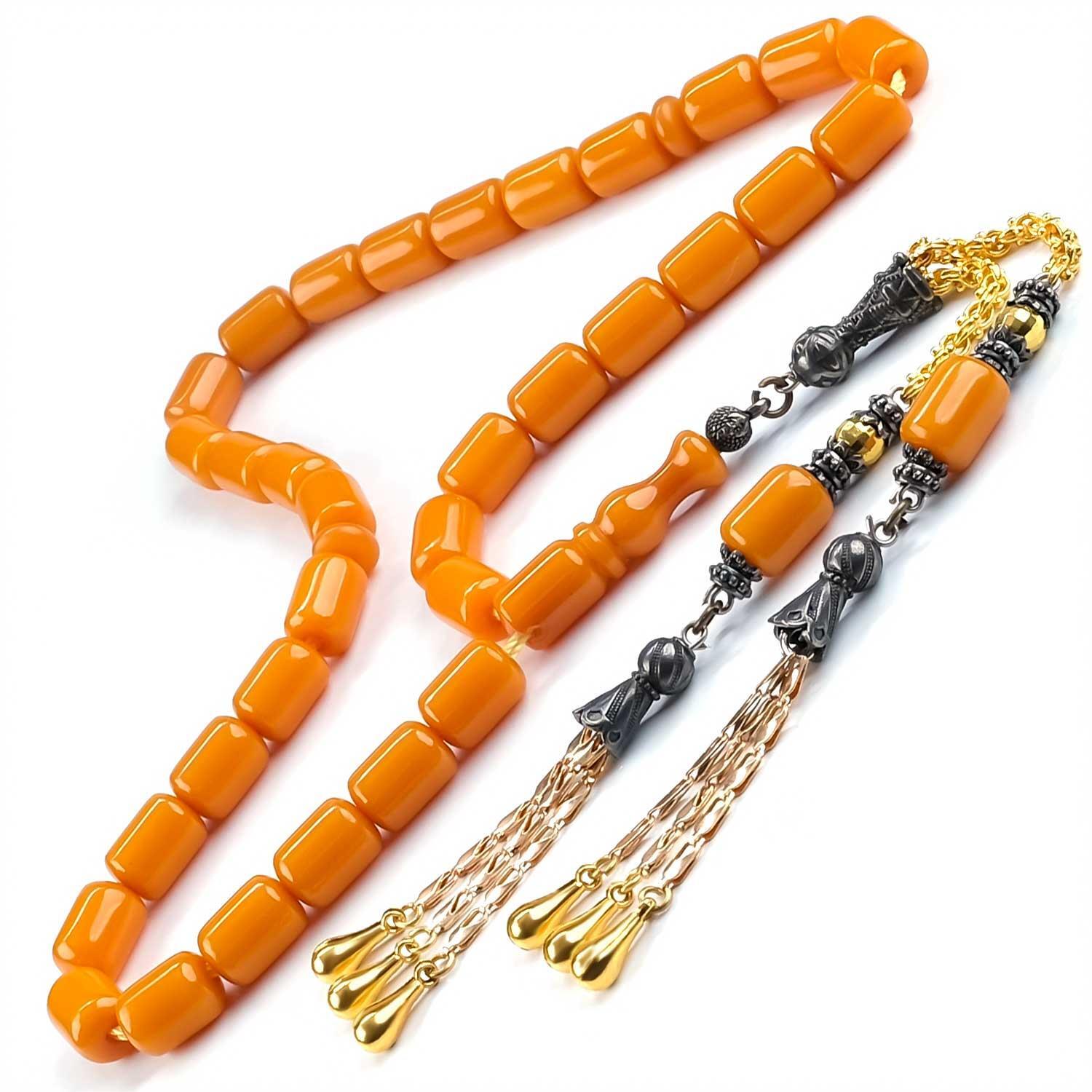 Turunç Kabuğu Kapsül Kesim Çift Püsküllü Sıkma Kehribar Tesbih