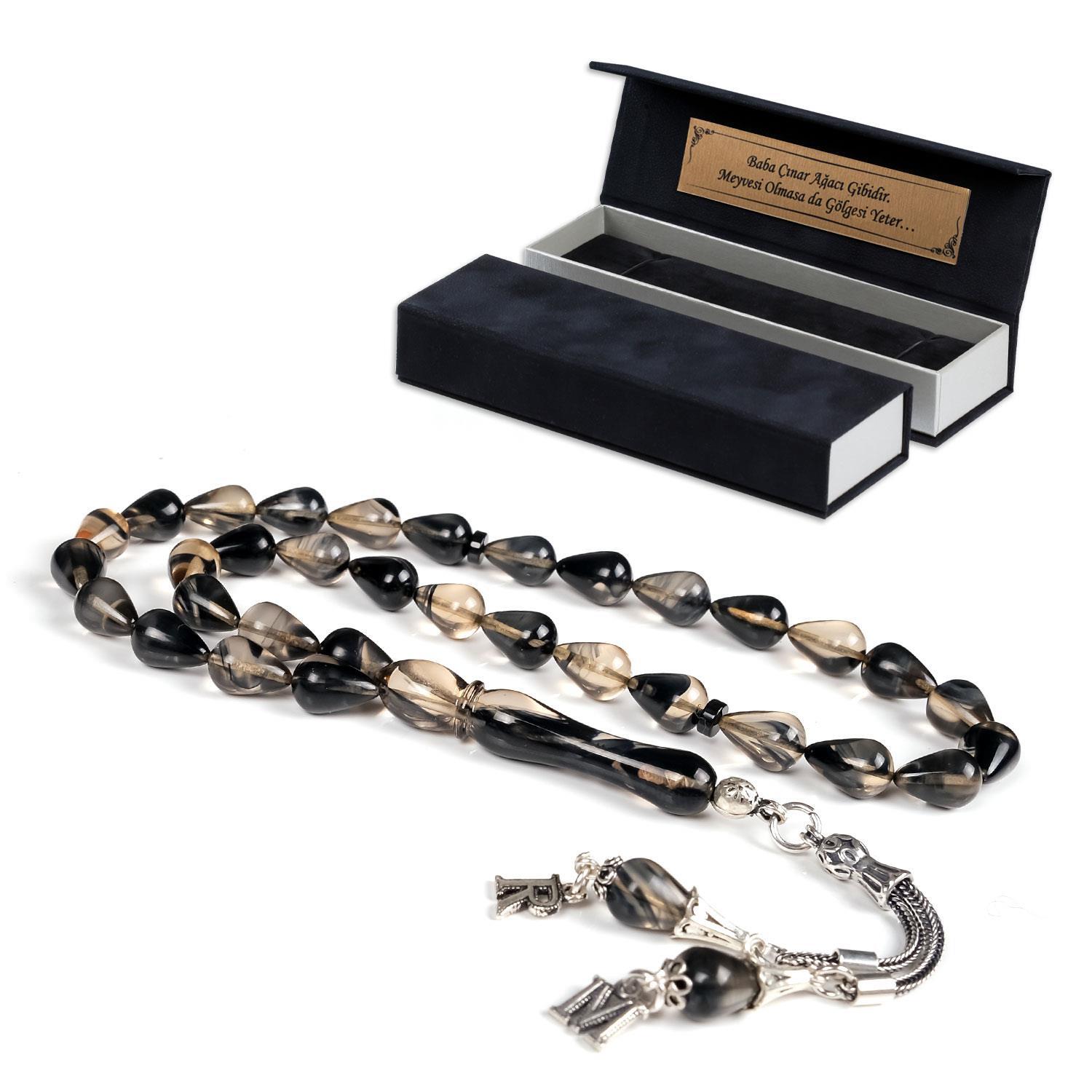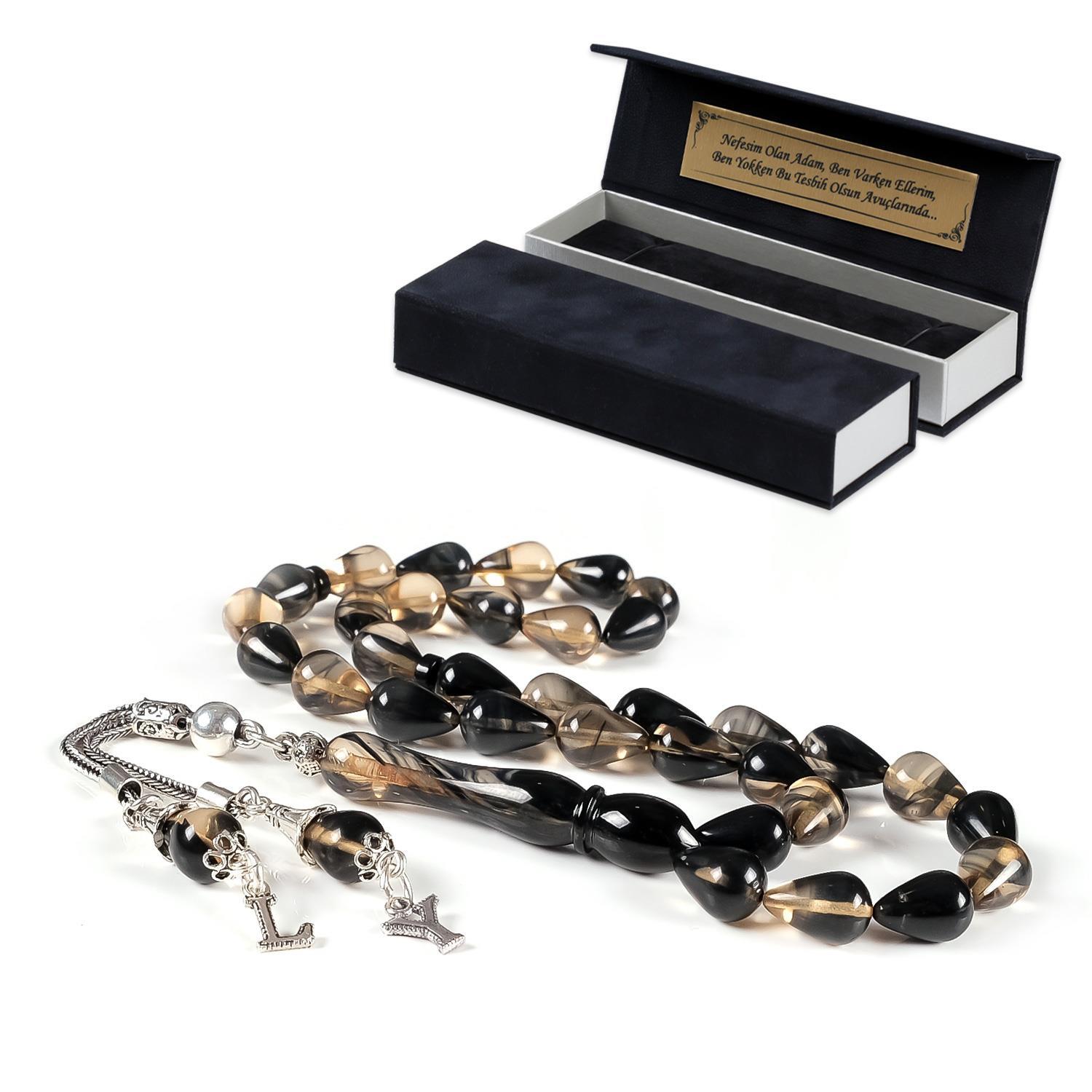Harf Püsküllü Füme Sıkma Kehribar İsimli Tesbih