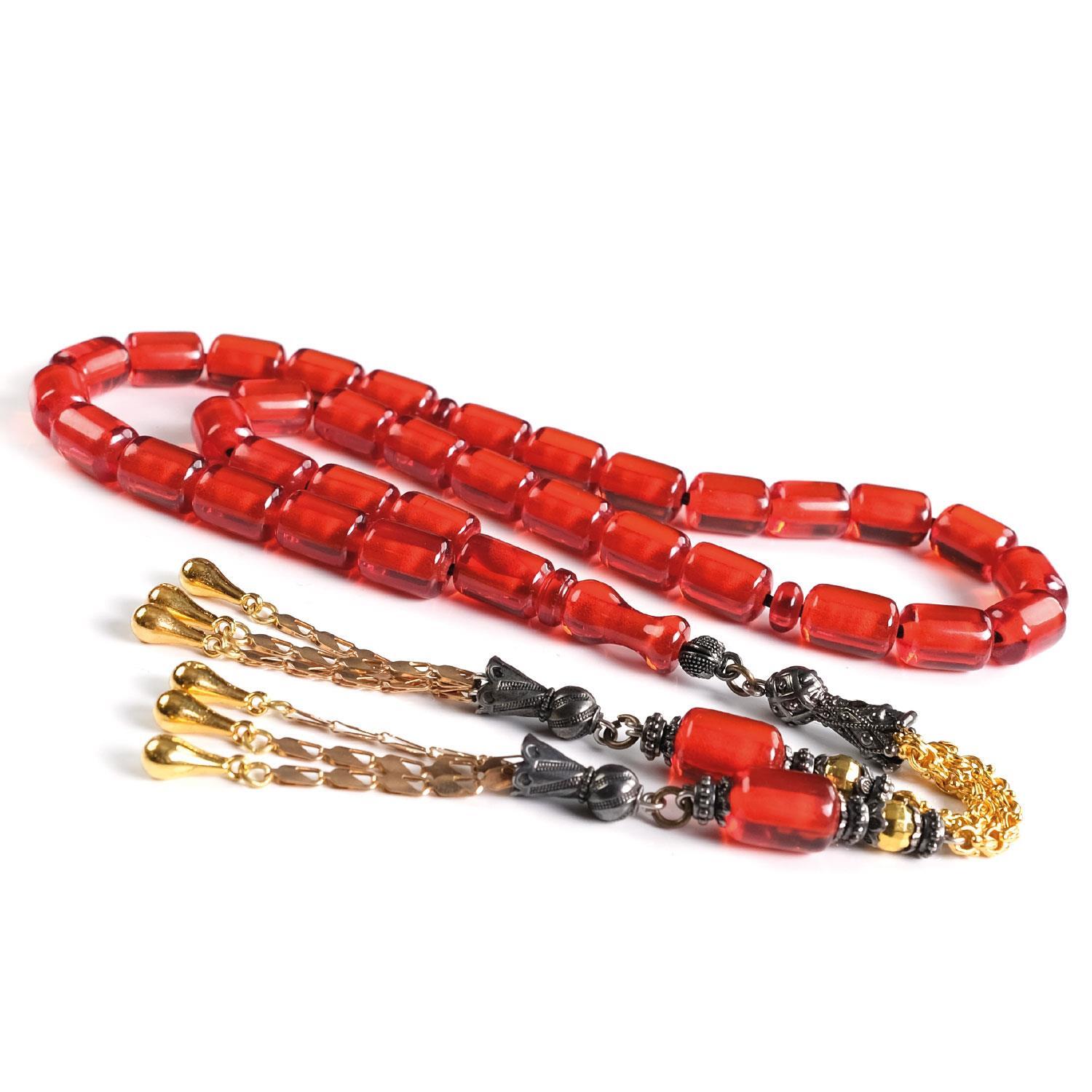 İri Boy Kapsül Kan Çiçeği Ateş Kehribar Tesbih