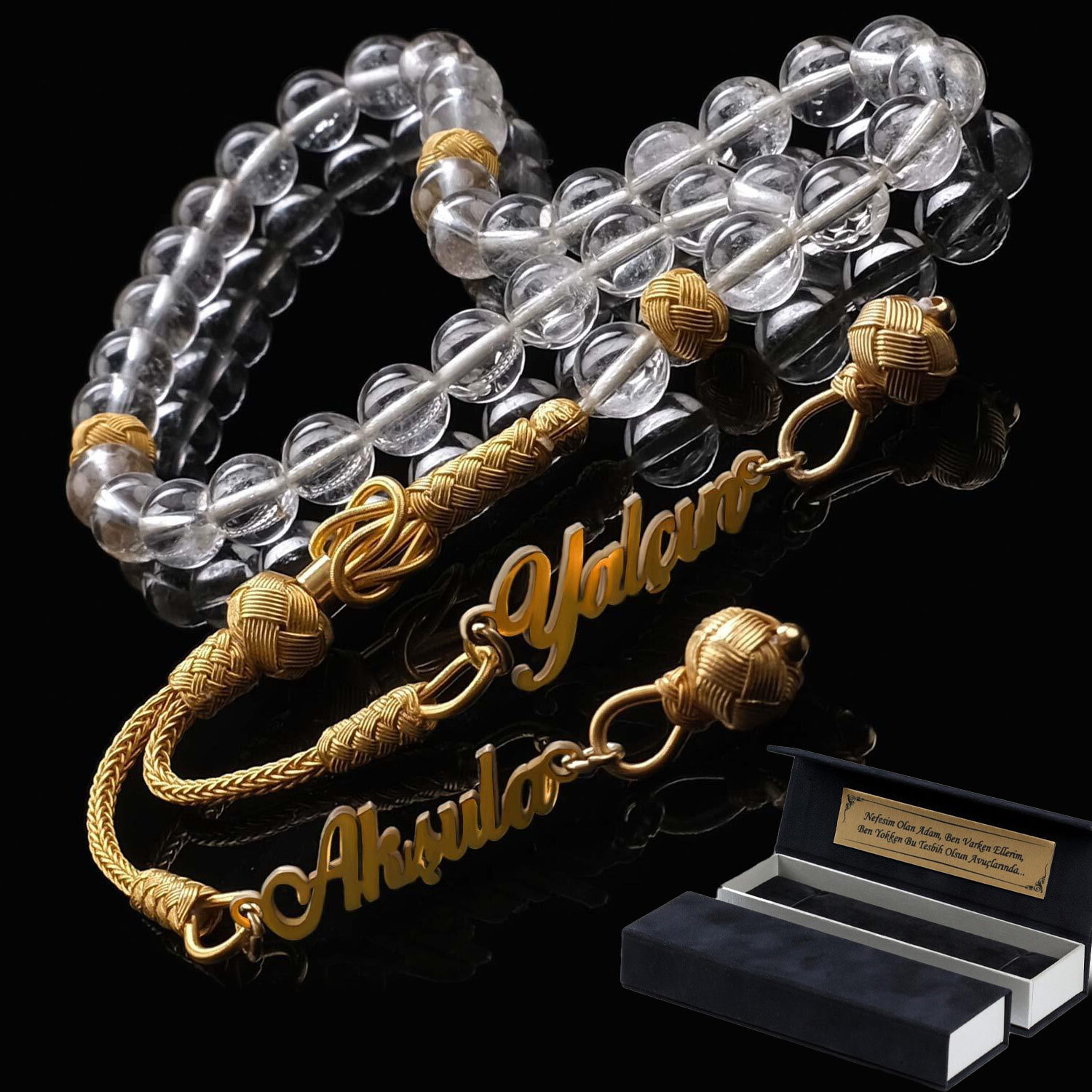 İsmine Özel Kuvars Taşı Tesbih isimli ürünü ister kendinize ister sevdiklerinize özel olarak hazırlatıp sipariş verebilirsiniz. İsimli tesbihlerin dışında faklı tasarımlarda tesbih ürünlerimizde mevcuttur.