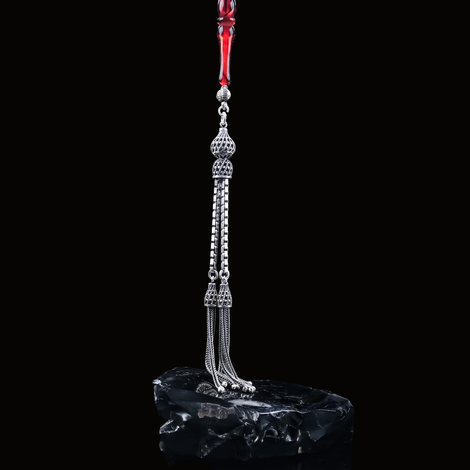 Tesbihlerin şıklığına şıklık katacak özel tasarım püsküller 925 ayar gümüşten üretilmektedir.