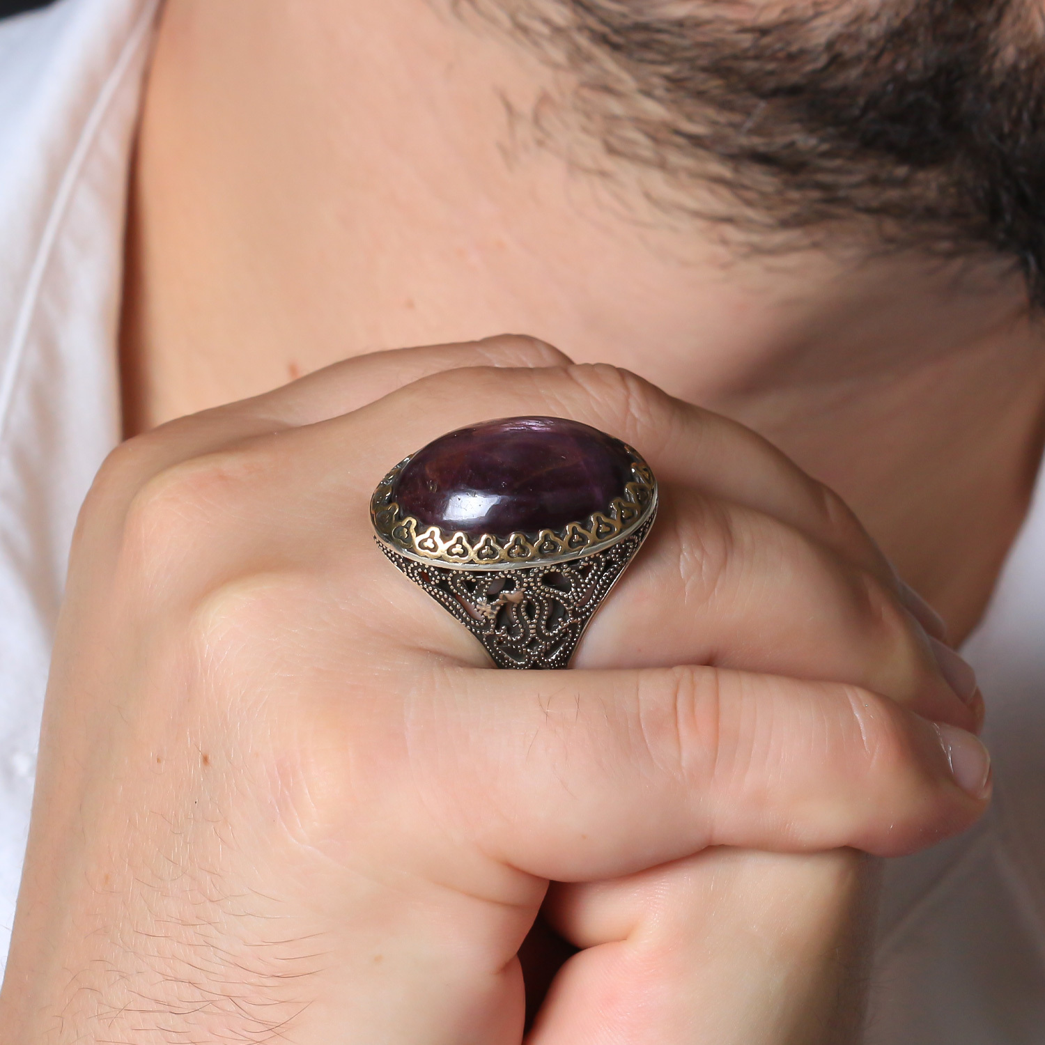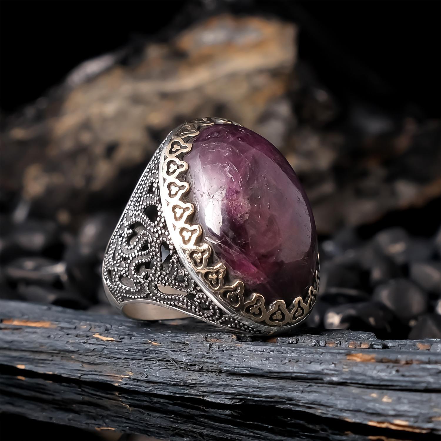 Kan Taşı Orjinal Yakut Taşlı Sertifikalı Gümüş Yüzük