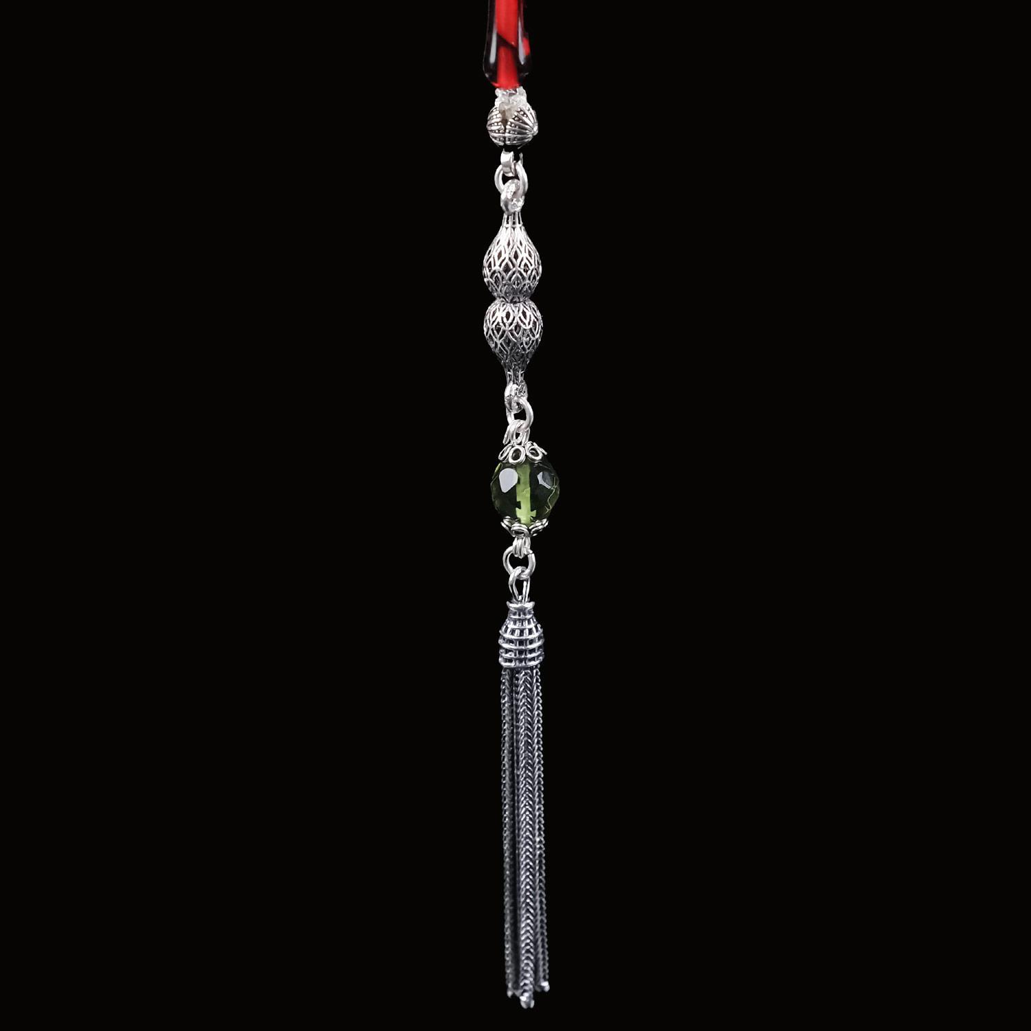 Kristal Damla Kehribar Detay Gümüş Tesbih Püskülü