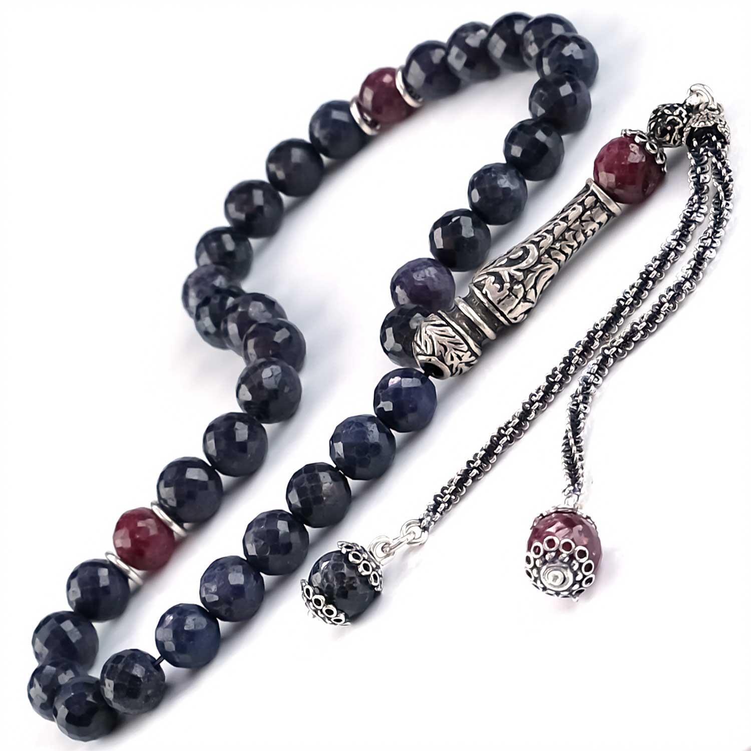 Kristal Kesim Safir Mix Yakut Taşı 925K Gümüş Tasarım Tesbih