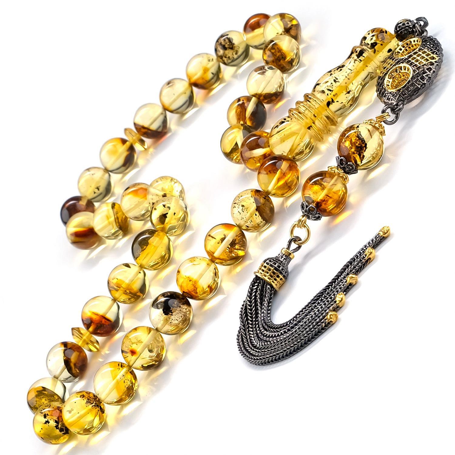 Litvanya Altını Old Class Fosilli Damla Kehribar Tesbih