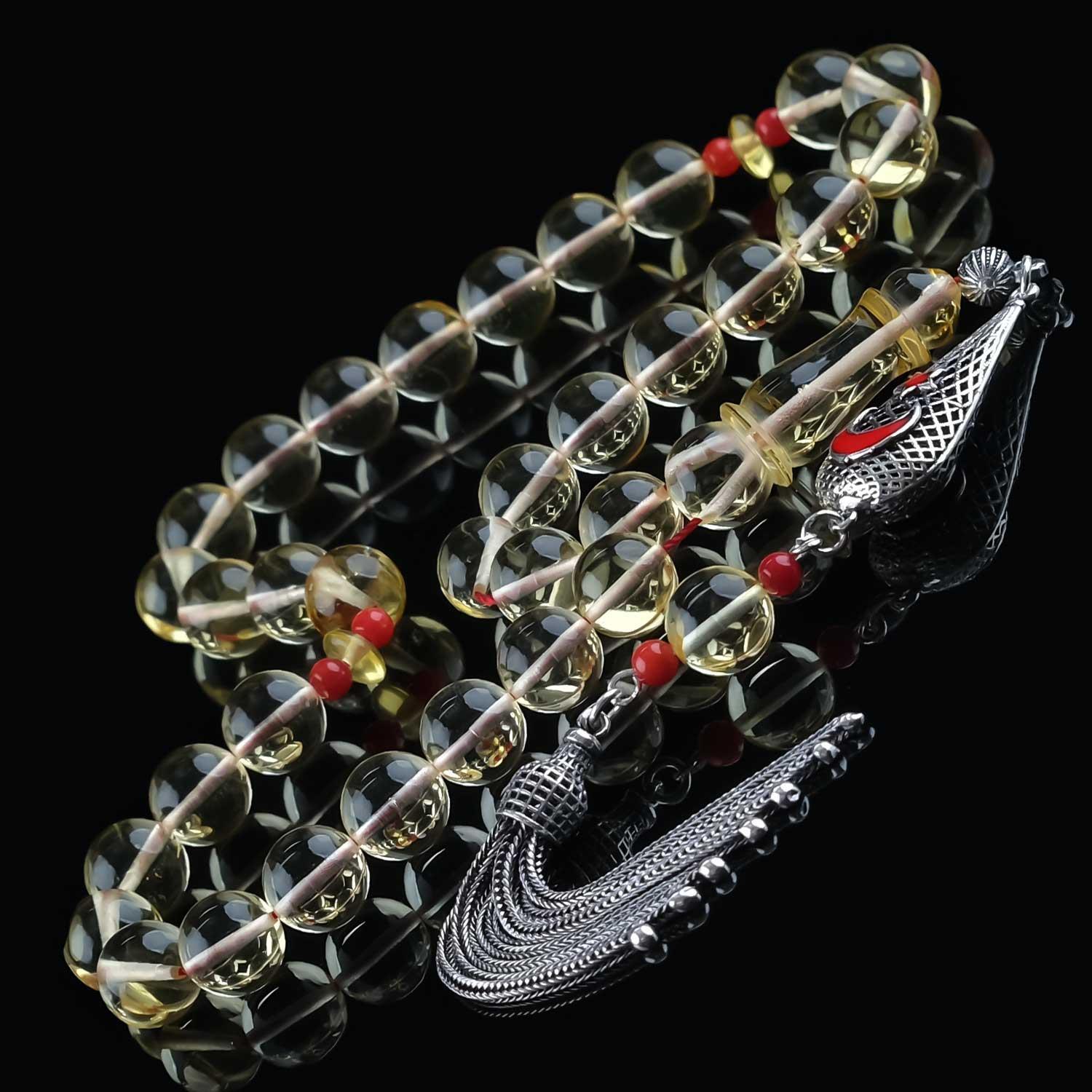 Mercan Tasarım Şeffaf Damla Kehribar Tesbih