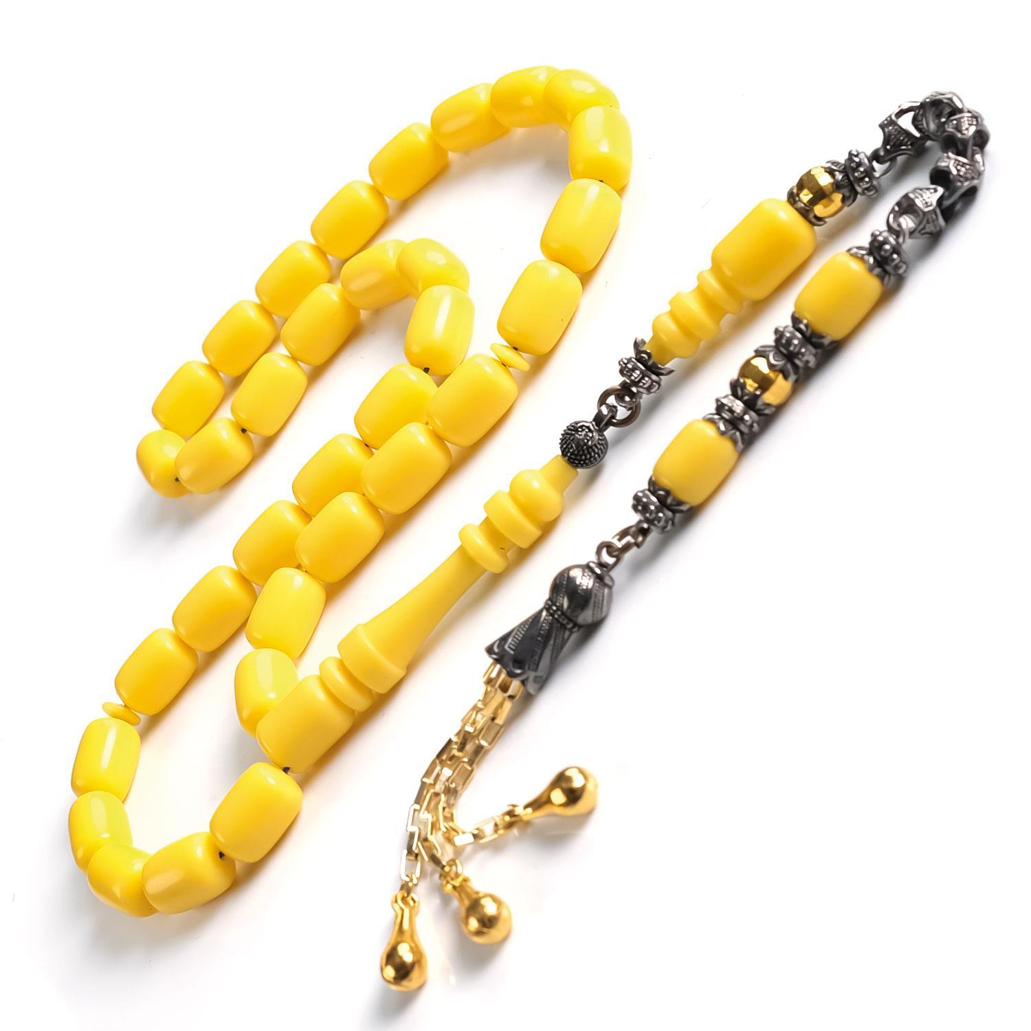 Mermer Desen Civciv Sarı Sıkma Kehribar Tesbih