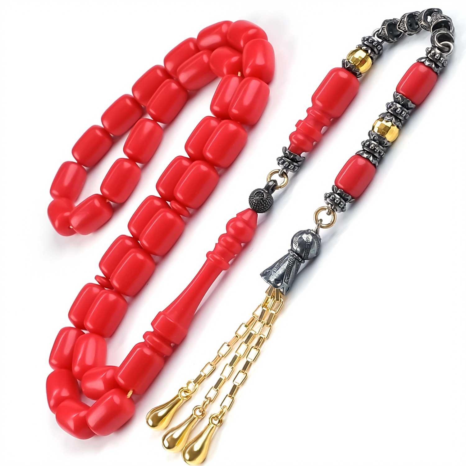Mermerit Kırmızı Sıkma Kehribar Tesbih