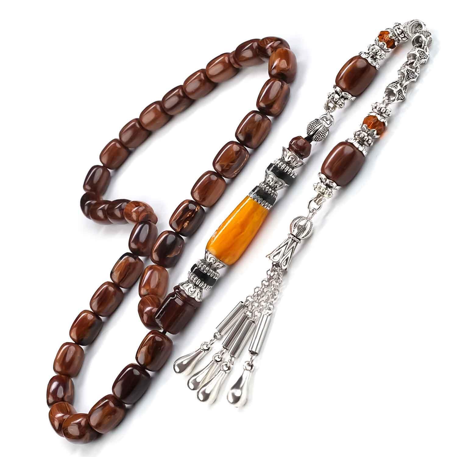 Nakkaş İmame Kahverengi Efes Model Sıkma Kehribar Tesbih