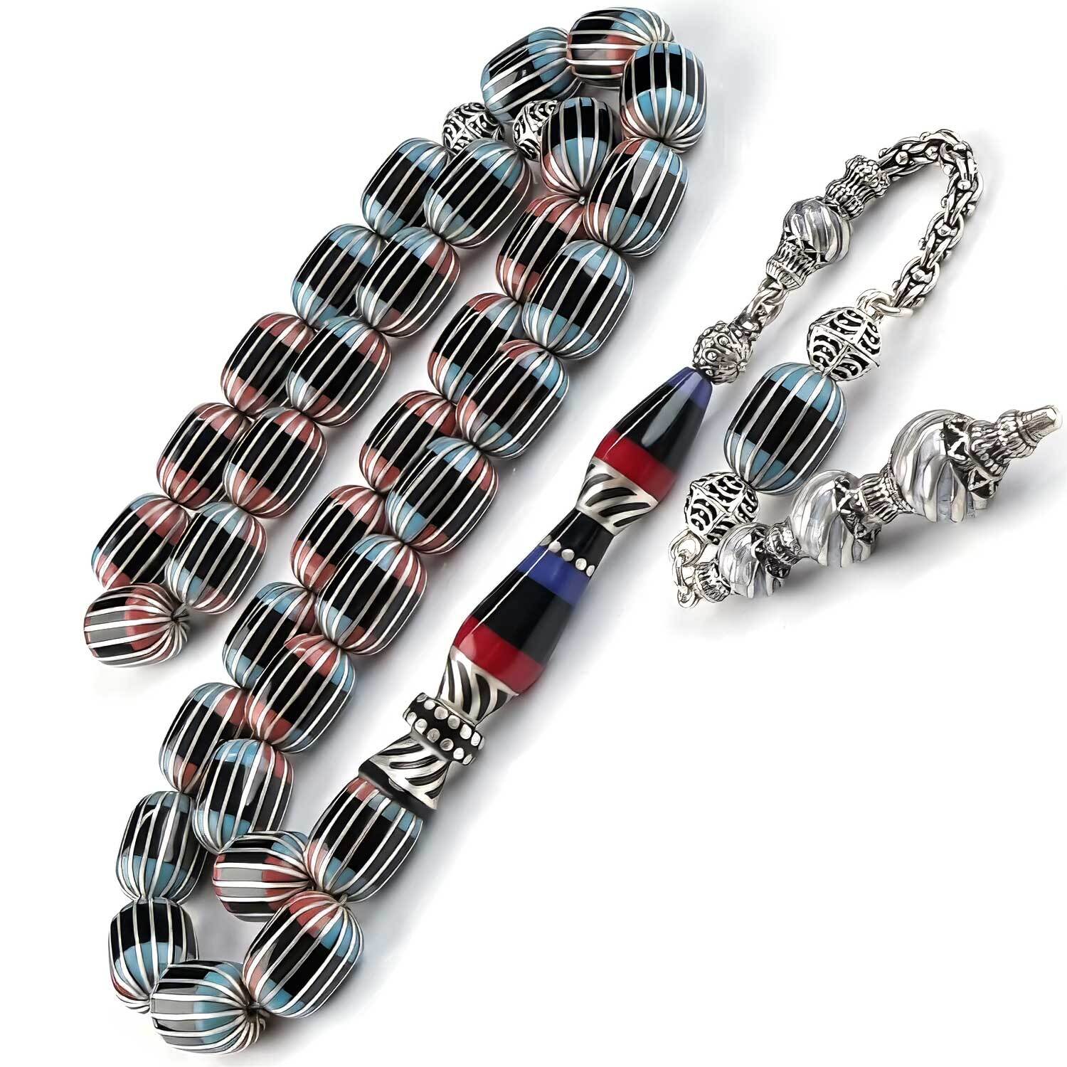 Nakkaş Kızıl Turkuaz Gümüş Yarma Erzurum Oltu Taşı Tesbih