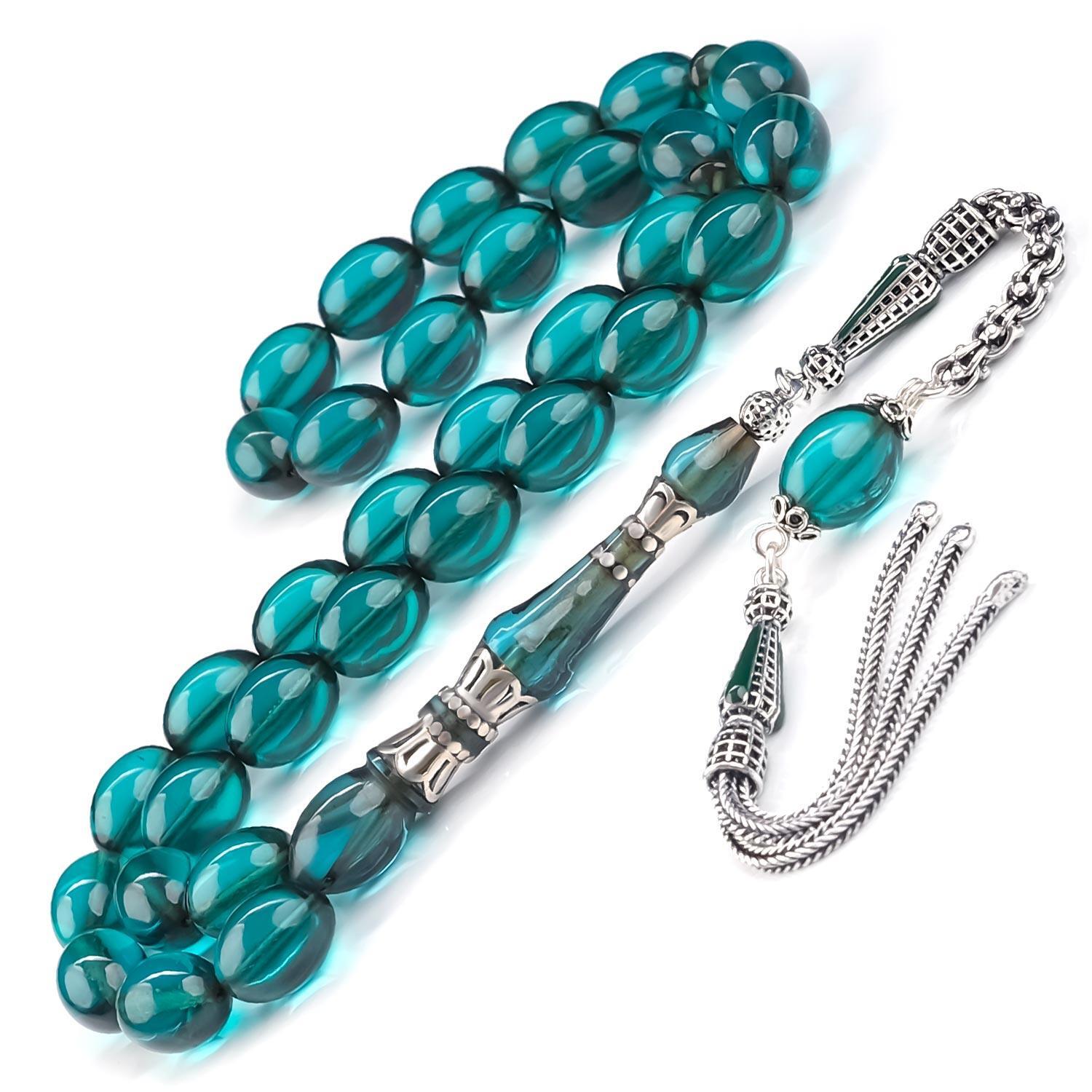 Nakkaş Petrol Yeşili Sıkma Kehribar Tesbih