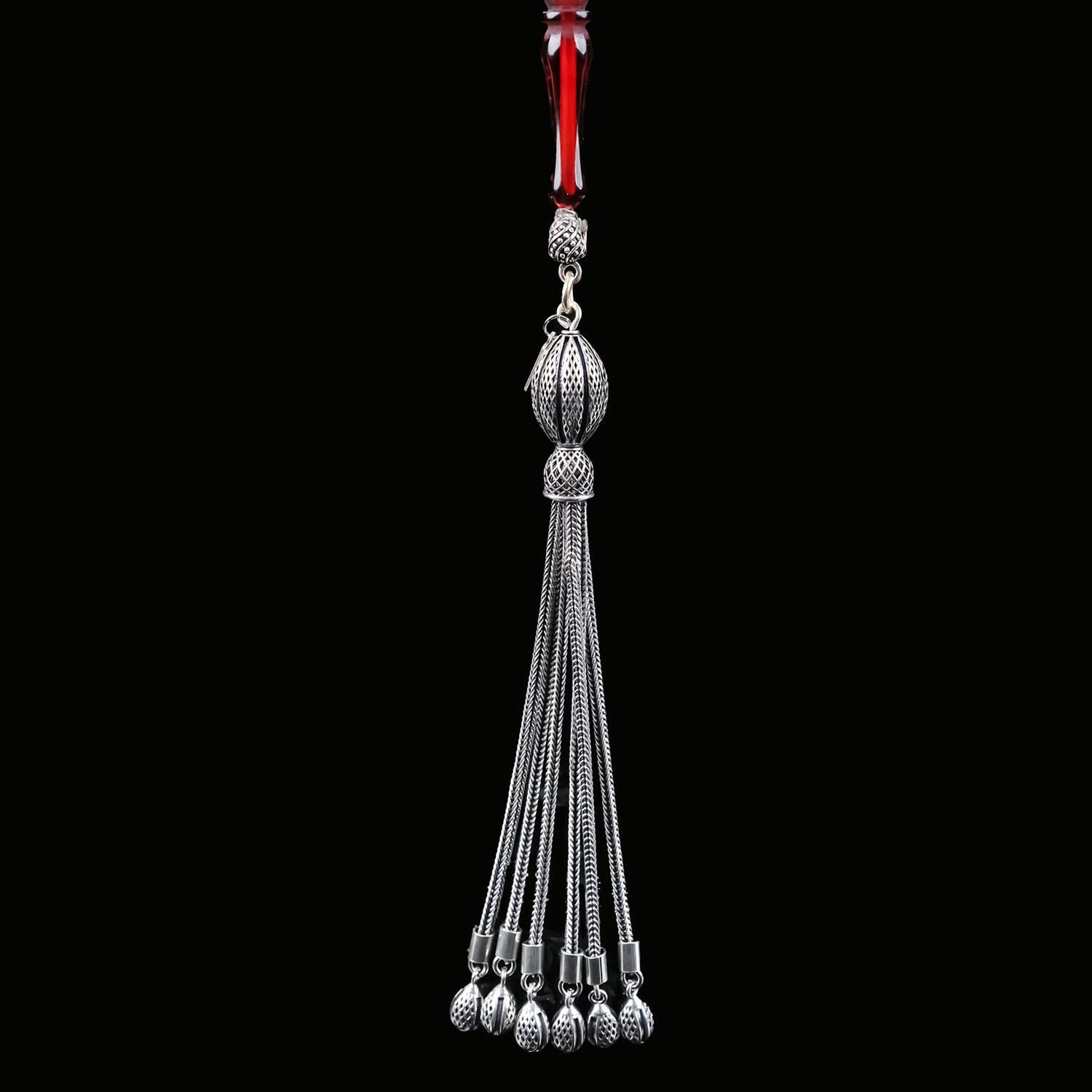 Tesbihlerin şıklığına şıklık katacak özel tasarım püsküller 925 ayar gümüşten üretilmektedir.