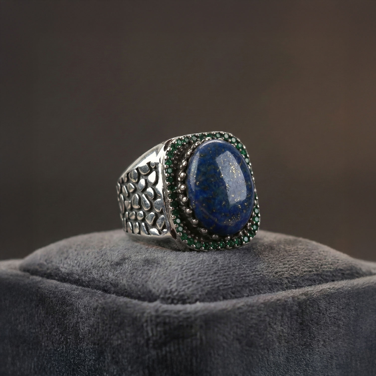 Orjinal Lapis Lazuli Taşlı Sertifikalı Zirkon Gümüş Yüzük