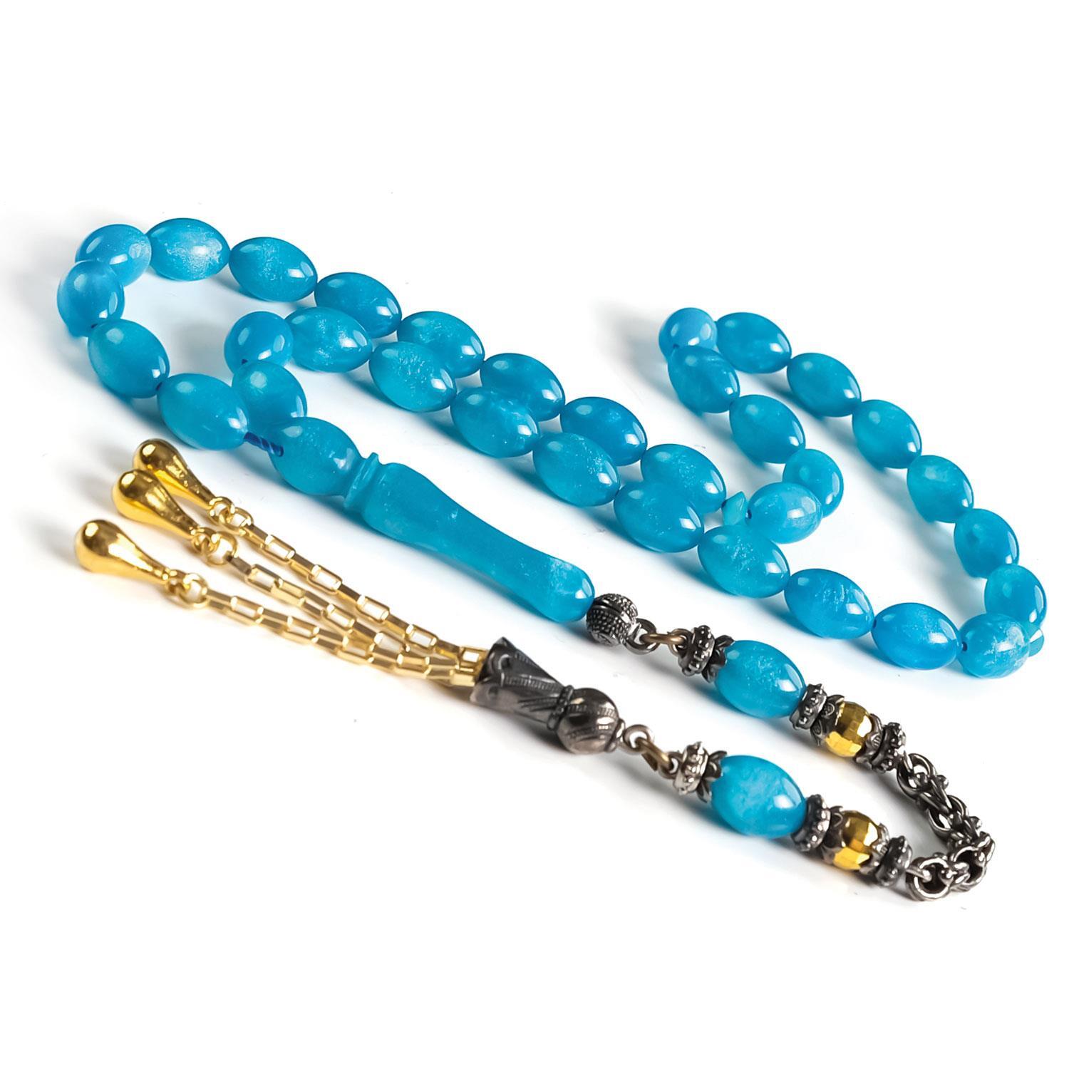 Özel Hamur Beyzi Kesim Firüze Renk Sıkma Kehribar Tesbih