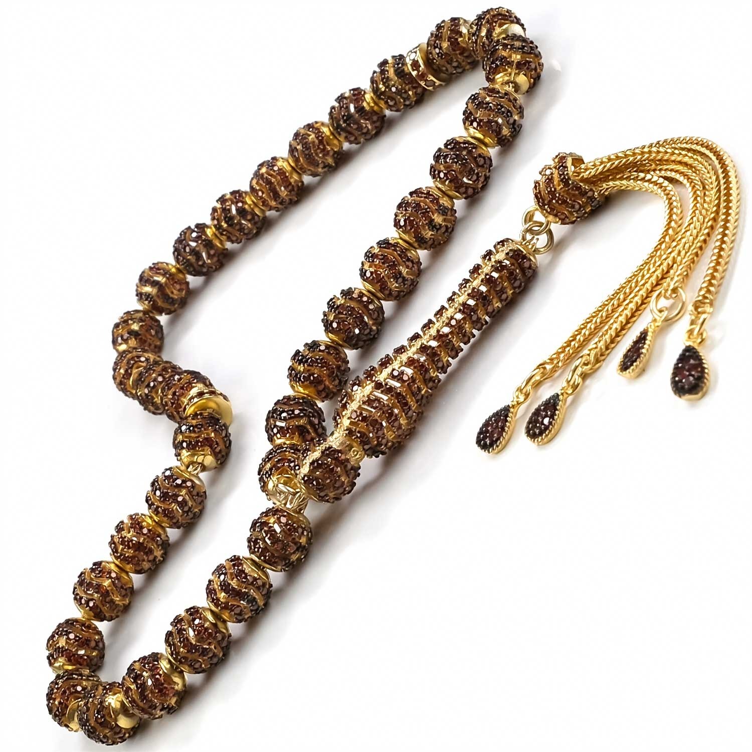 Özel Tasarım Zirkon İşlemeli Gümüş Tesbih