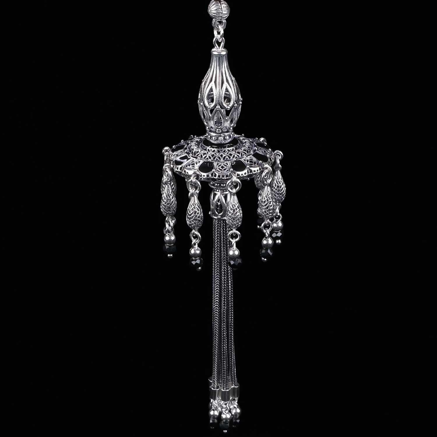 Özel Üretim Black Gray Semazen Gümüş 925 Ayar Tesbih Püskülü