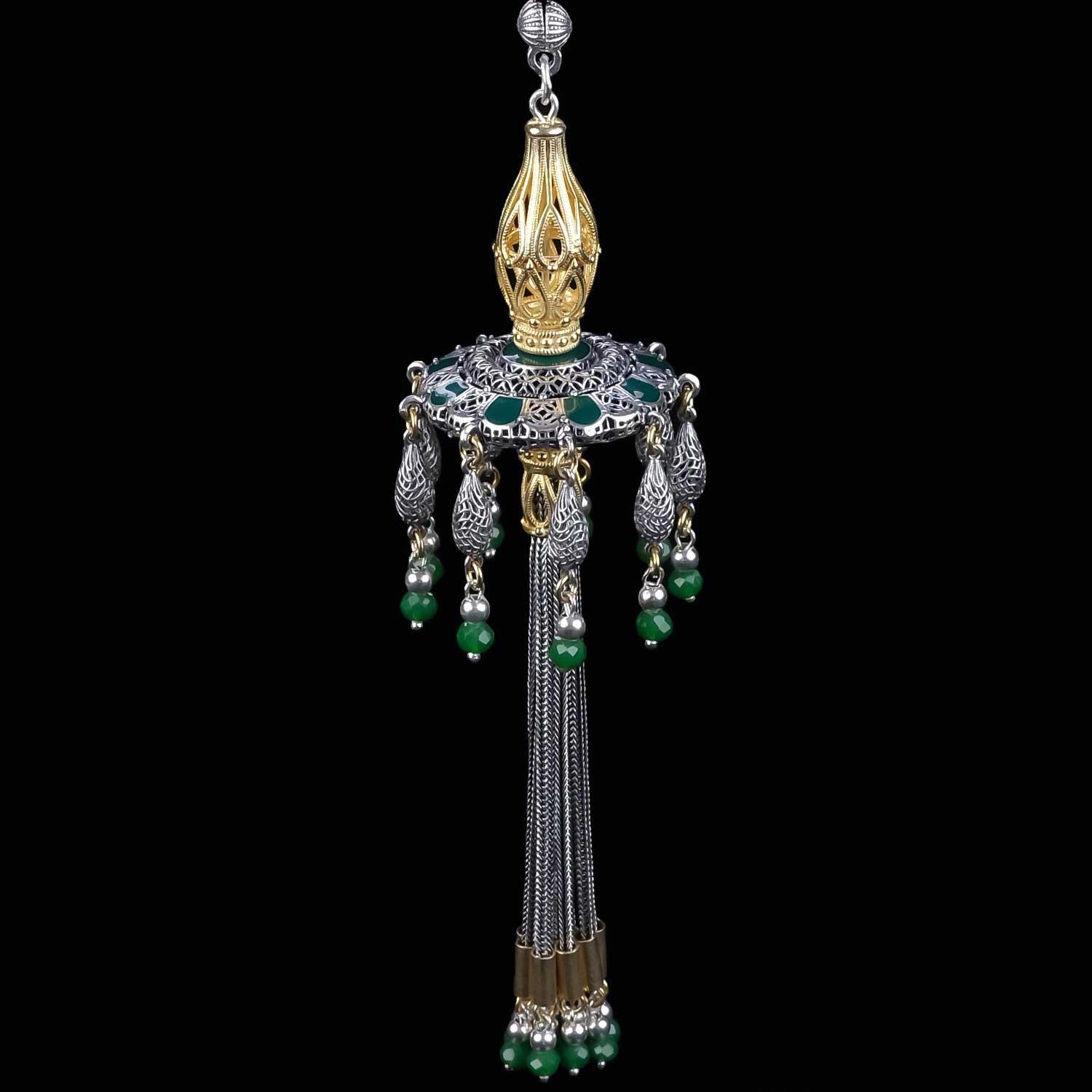 Özel Üretim Gold Green Semazen Gümüş 925 Ayar Tesbih Püskülü