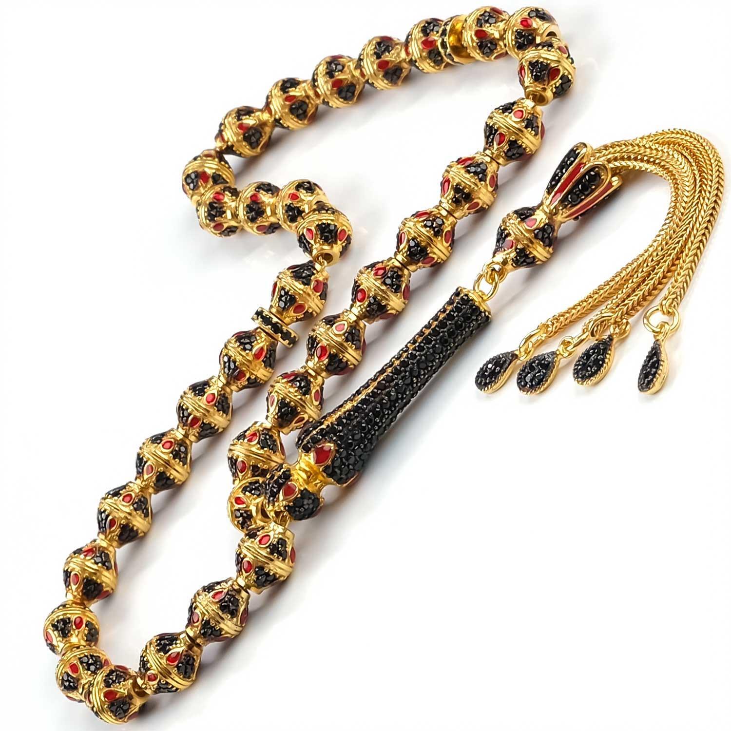 Özel Üretim Siyah Zirkon 925 Ayar Gümüş Tesbih