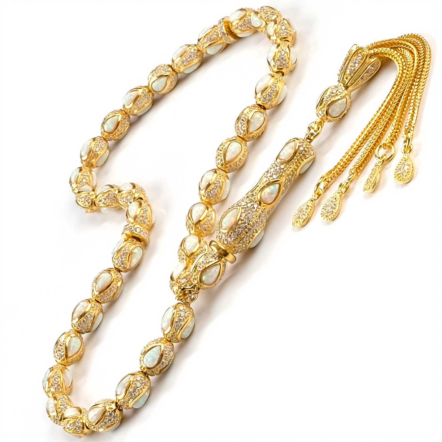 Saf Opal Taşı ile 925 Ayar Gümüş Tesbih
