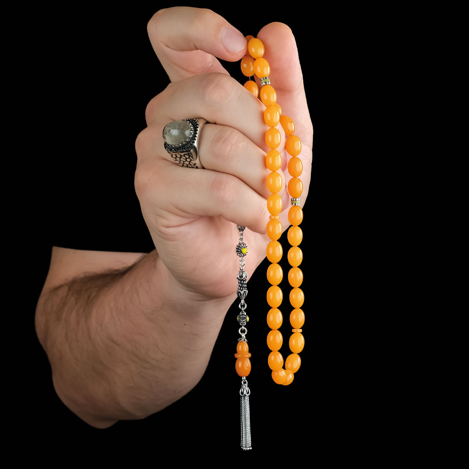 Şeker Sarı Nakkaş İmame Sıkma Kehribar Tesbih