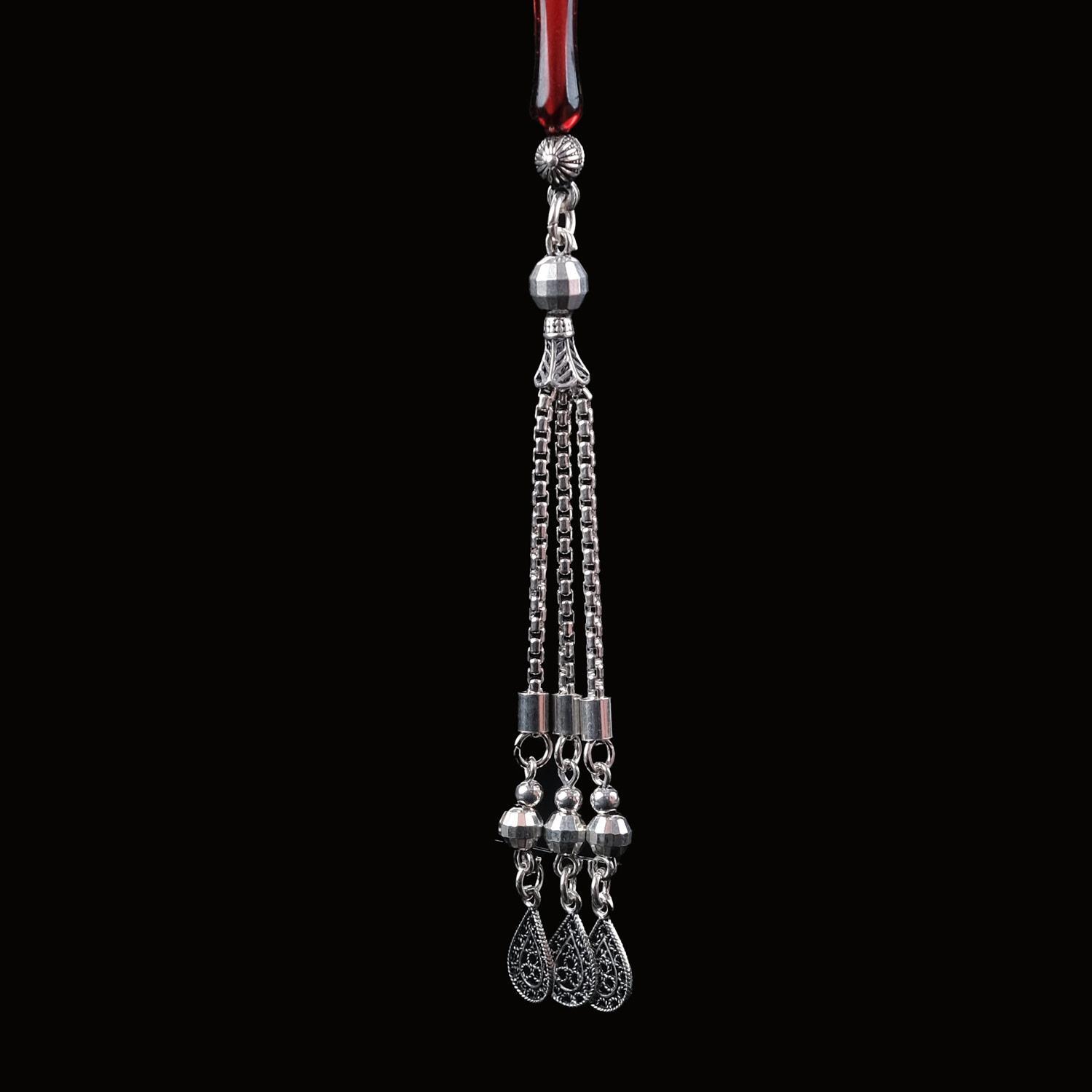 Tesbihlerin şıklığına şıklık katacak özel tasarım püsküller 925 ayar gümüşten üretilmektedir.