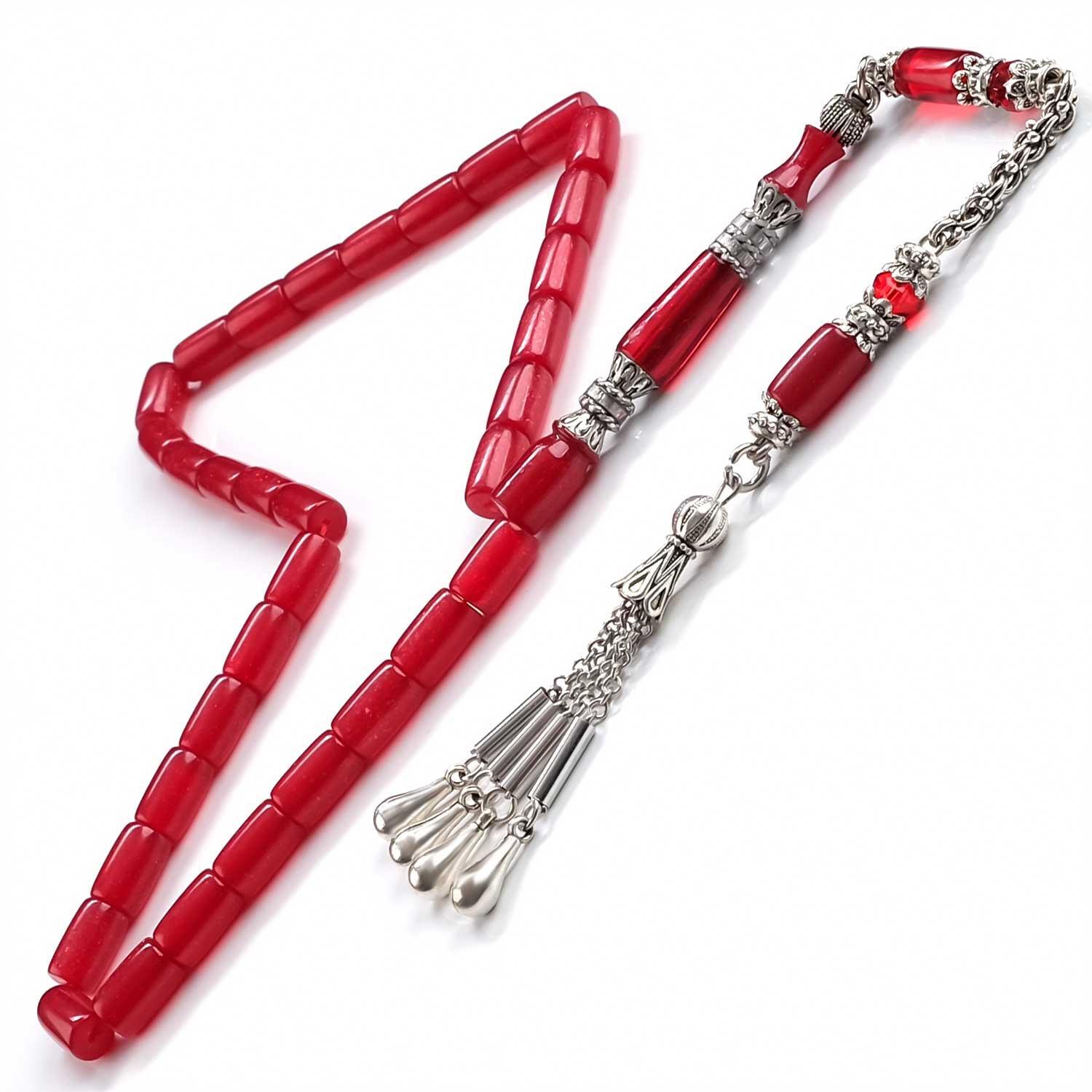 Simli Nakkaş Kesme Model Kızıl Sıkma Kehribar Tesbih