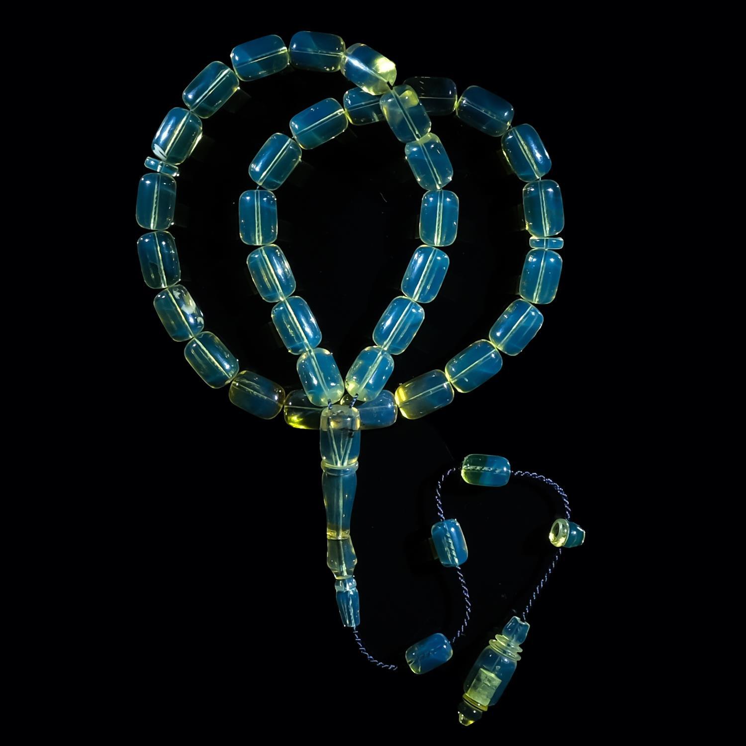 Sky Blue Eşsiz Eser Dominik Damla Kehribar Tesbih