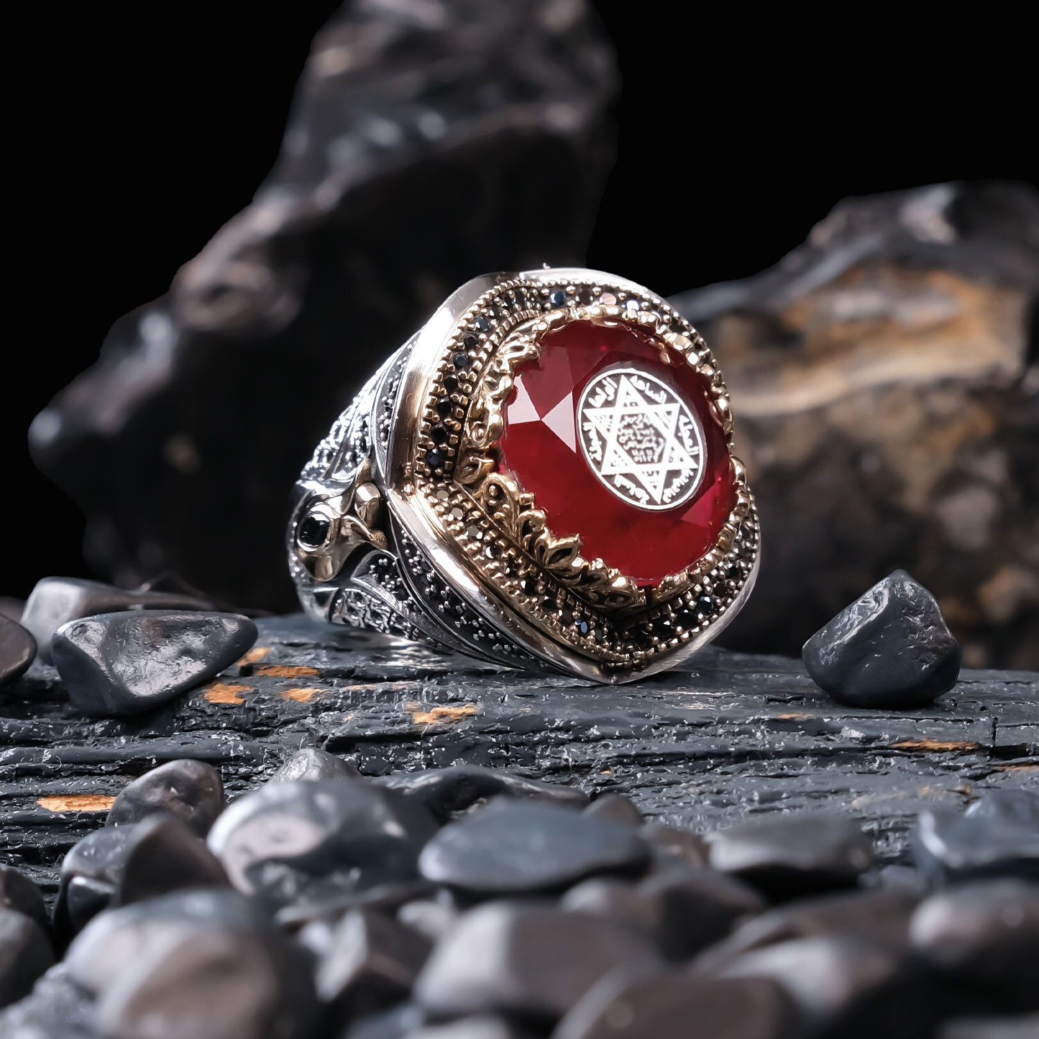 Süleyman Mührü İşleme Kızıl Ateş Gümüş Yüzük