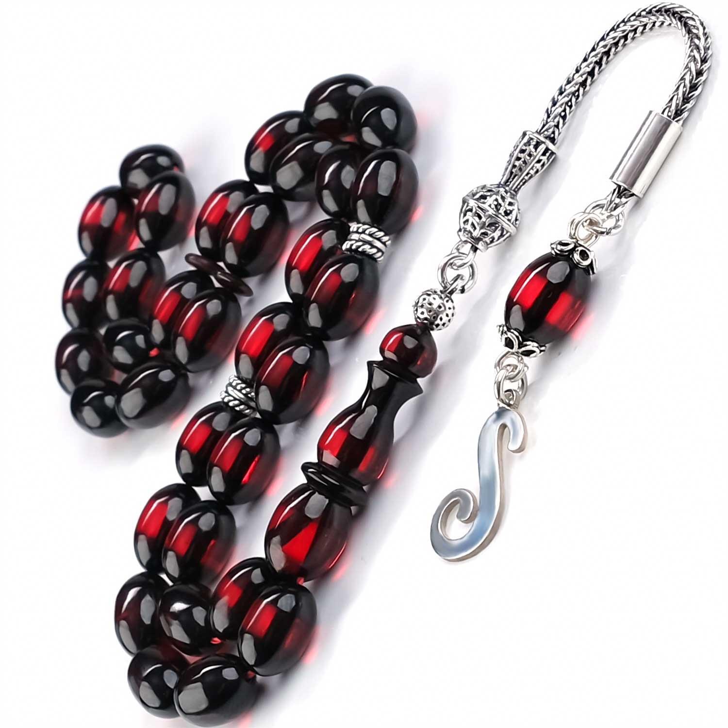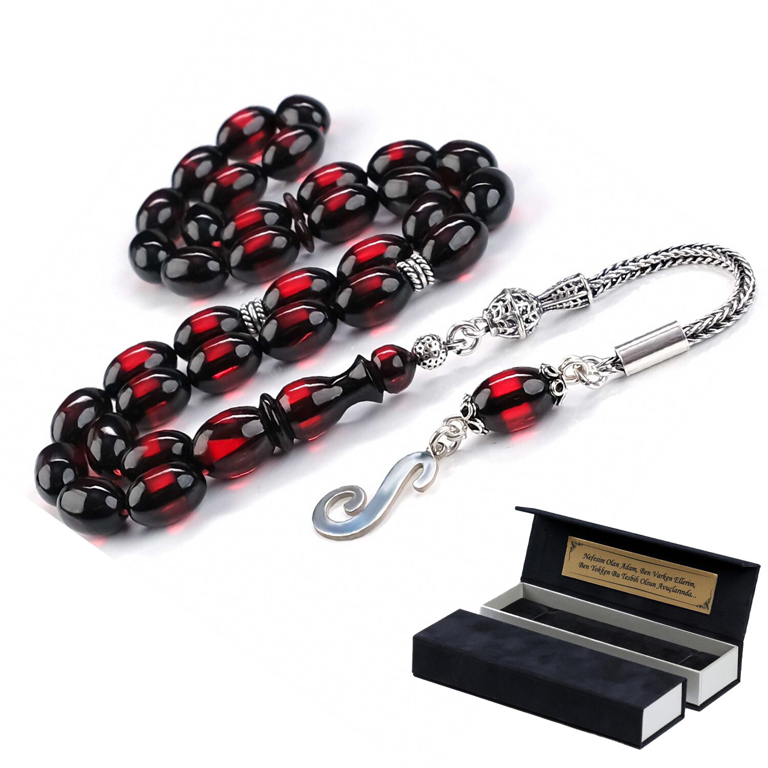 Sürmeli Kırmızı Harf Tasarım Ateş Kehribarı Tesbih