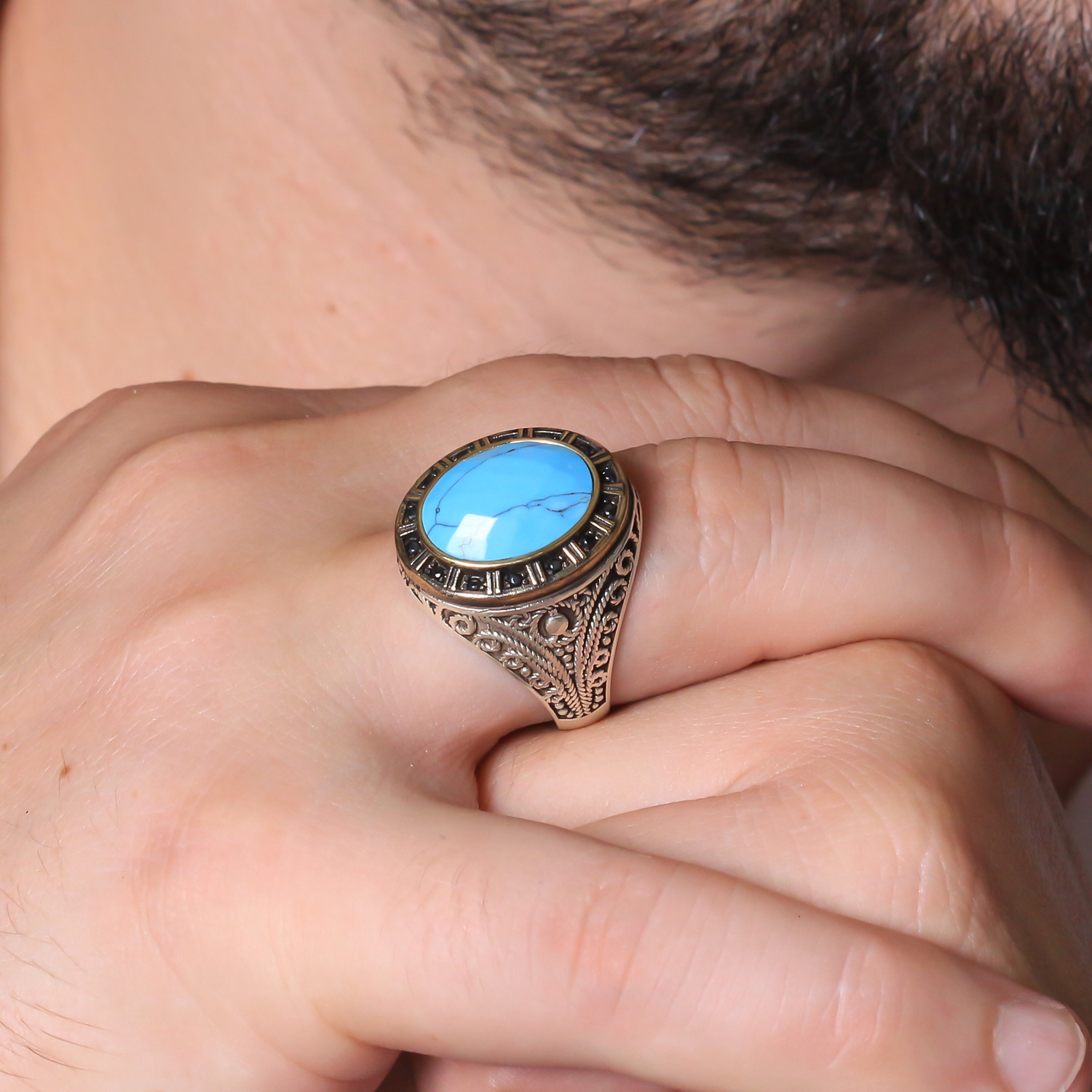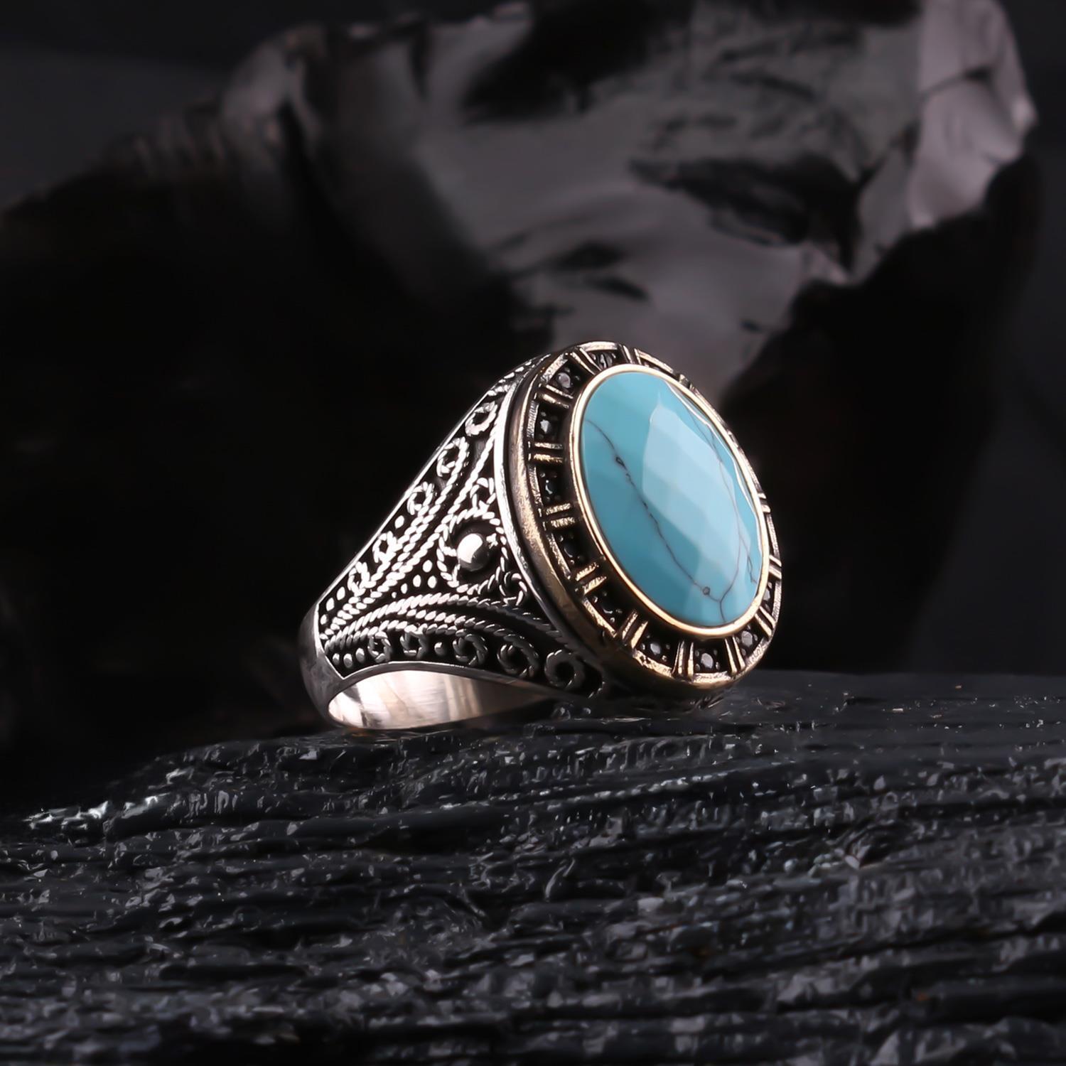 Turkuaz Model Özel İşlemeli Gümüş Yüzük