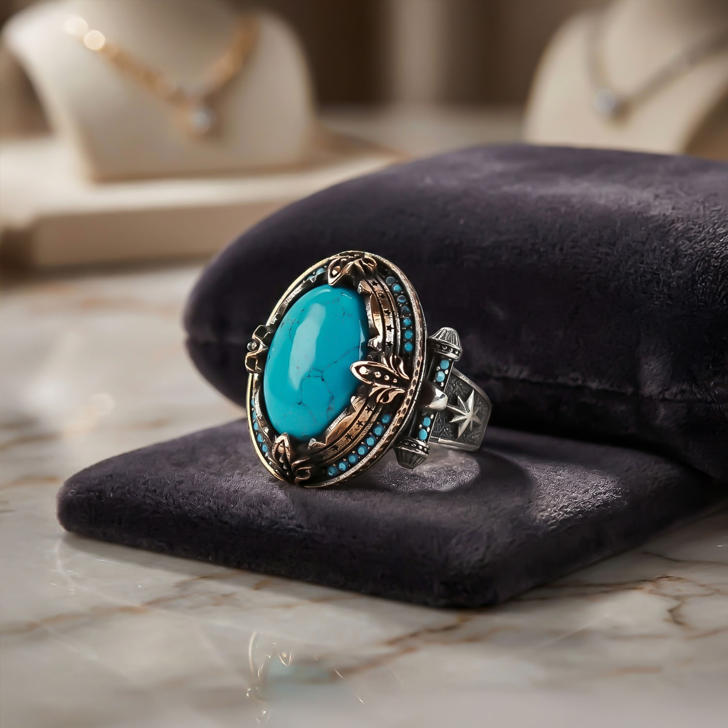 Turkuaz Renk Zirkon Taşlı Gümüş Yüzük