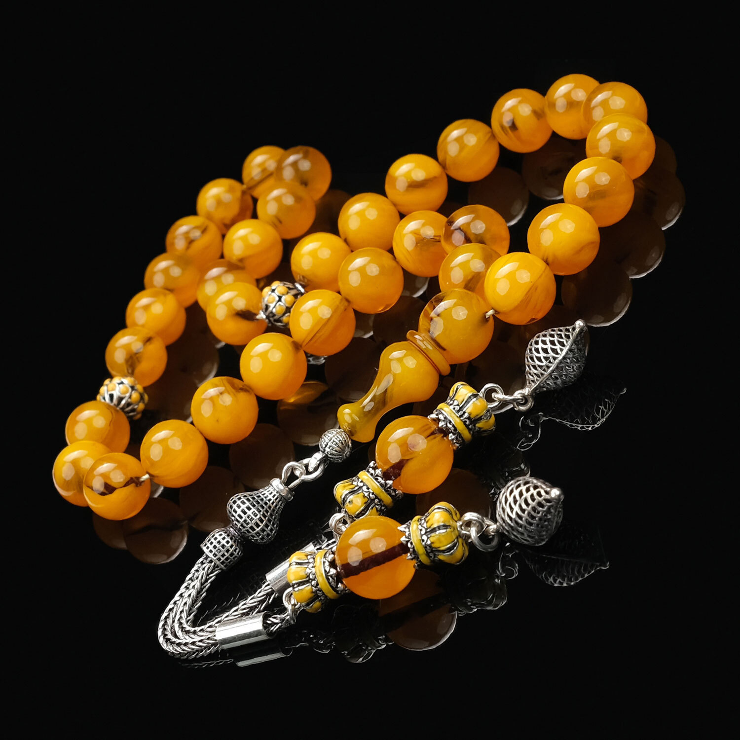 Usta İşi Hareli Yapısıyla Sıkma Kehribar Tesbih